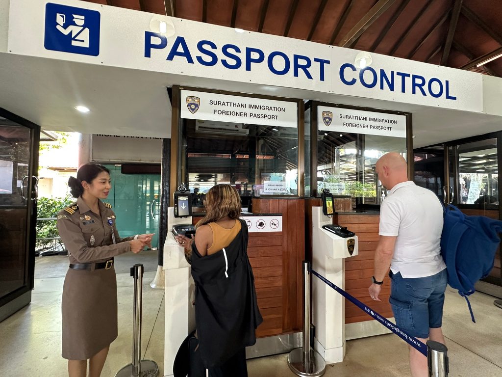 วันที่ 29 ต.ค.67 ร.ต.อ.ปิติพงษ์ เสนชู รอง สว.ตม.จว.สุราษฎร์ธานี ,ร.ต.อ.หญิง ภาวดี หวานทอง ,ร.ต.อ.หญิง จันทร์จิรา วิถี พร้อมด้วยเจ้าหน้าที่ ตม.จว.สุราษฎร์ธานี (ทอ.สมุย) ปฏิบัติหน้าที่ตรวจบุุคคลและพาหนะทางอากาศ, Overstay, Visa on arrival พร้อมดูแล ช่วยเหลือ อำนวยความสะดวกและความเรียบร้อยในแถวระหว่างรอเข้าใช้บริการให้กับผู้โดยสารที่เดินทางเข้า-ออก ทางอากาศในเขตพื้นที่รับผิดชอบประจำสนามบินสมุย อ.เกาะสมุย จว.สุราษฎร์ธานี