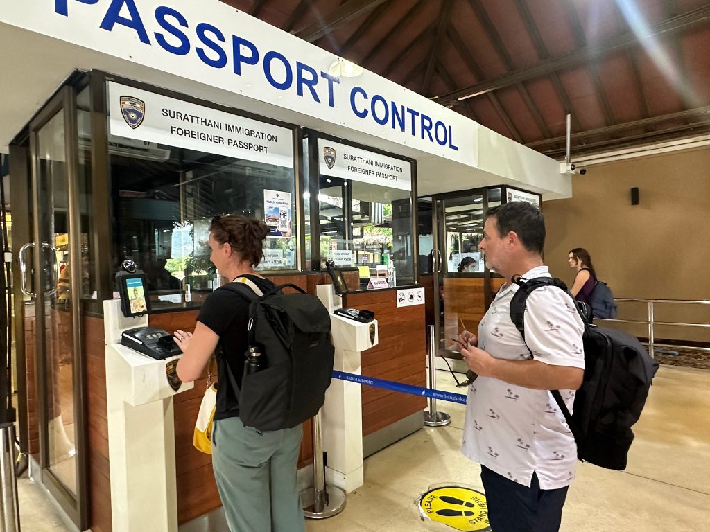 วันที่ 31 ต.ค.67 ร.ต.อ.ปิติพงษ์ เสนชู รอง สว.ตม.จว.สุราษฎร์ธานี ,ร.ต.อ.หญิง ภาวดี หวานทอง ,ร.ต.อ.หญิง จันทร์จิรา วิถี พร้อมด้วยเจ้าหน้าที่ ตม.จว.สุราษฎร์ธานี (ทอ.สมุย) ปฏิบัติหน้าที่ตรวจบุุคคลและพาหนะทางอากาศ, Overstay, Visa on arrival พร้อมดูแล ช่วยเหลือ อำนวยความสะดวกและความเรียบร้อยในแถวระหว่างรอเข้าใช้บริการให้กับผู้โดยสารที่เดินทางเข้า-ออก ทางอากาศในเขตพื้นที่รับผิดชอบประจำสนามบินสมุย อ.เกาะสมุย จว.สุราษฎร์ธานี