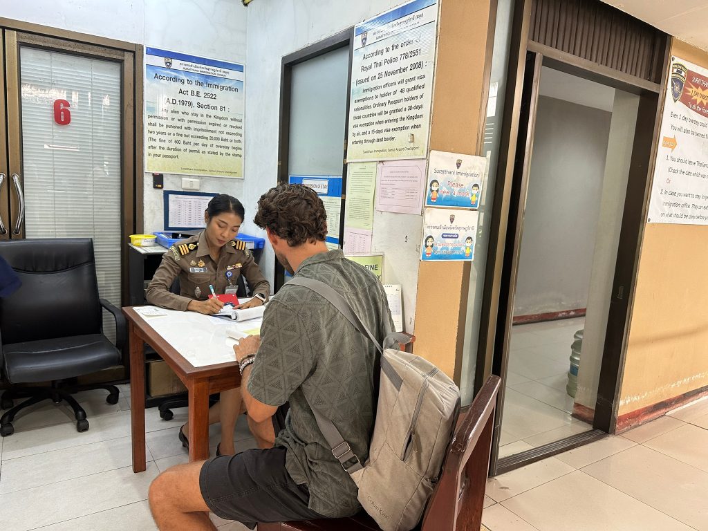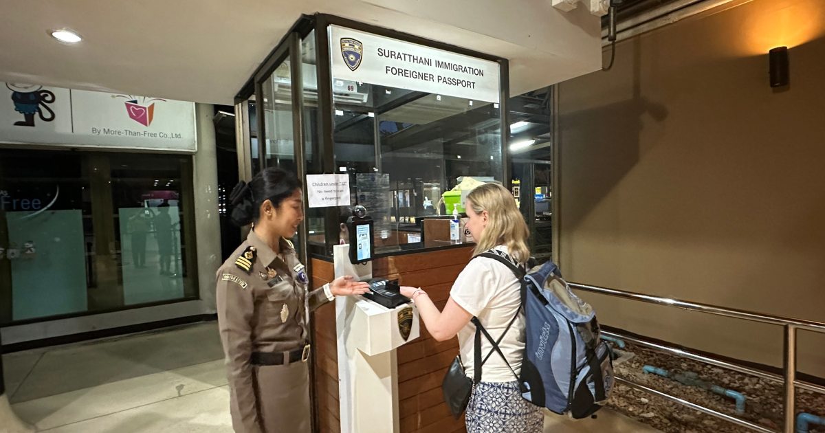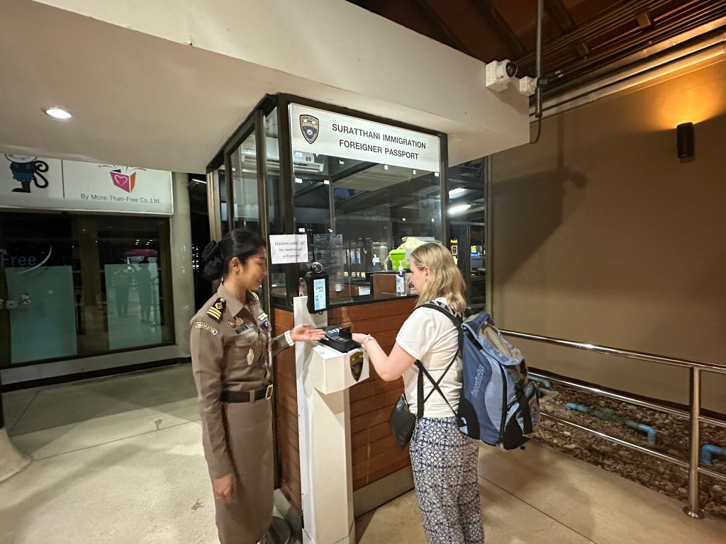 วันที่ 25 พ.ย.67 ร.ต.อ.ปิติพงษ์ เสนชู รอง สว.ตม.จว.สุราษฎร์ธานี ,ร.ต.อ.หญิง ภาวดี หวานทอง ,ร.ต.อ.หญิง จันทร์จิรา วิถี พร้อมด้วยเจ้าหน้าที่ ตม.จว.สุราษฎร์ธานี (ทอ.สมุย) ปฏิบัติหน้าที่ตรวจบุุคคลและพาหนะทางอากาศ, Overstay, Visa on arrival พร้อมดูแล ช่วยเหลือ อำนวยความสะดวกและความเรียบร้อยในแถวระหว่างรอเข้าใช้บริการให้กับผู้โดยสารที่เดินทางเข้า-ออก ทางอากาศในเขตพื้นที่รับผิดชอบประจำสนามบินสมุย อ.เกาะสมุย จว.สุราษฎร์ธานี