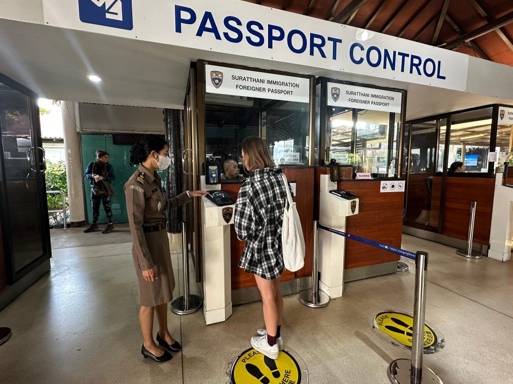 วันที่ 29 พ.ย.67 ร.ต.อ.ปิติพงษ์ เสนชู รอง สว.ตม.จว.สุราษฎร์ธานี ,ร.ต.อ.หญิง ภาวดี หวานทอง ,ร.ต.อ.หญิง จันทร์จิรา วิถี พร้อมด้วยเจ้าหน้าที่ ตม.จว.สุราษฎร์ธานี (ทอ.สมุย) ปฏิบัติหน้าที่ตรวจบุุคคลและพาหนะทางอากาศ, Overstay, Visa on arrival พร้อมดูแล ช่วยเหลือ อำนวยความสะดวกและความเรียบร้อยในแถวระหว่างรอเข้าใช้บริการให้กับผู้โดยสารที่เดินทางเข้า-ออก ทางอากาศในเขตพื้นที่รับผิดชอบประจำสนามบินสมุย อ.เกาะสมุย จว.สุราษฎร์ธานี
