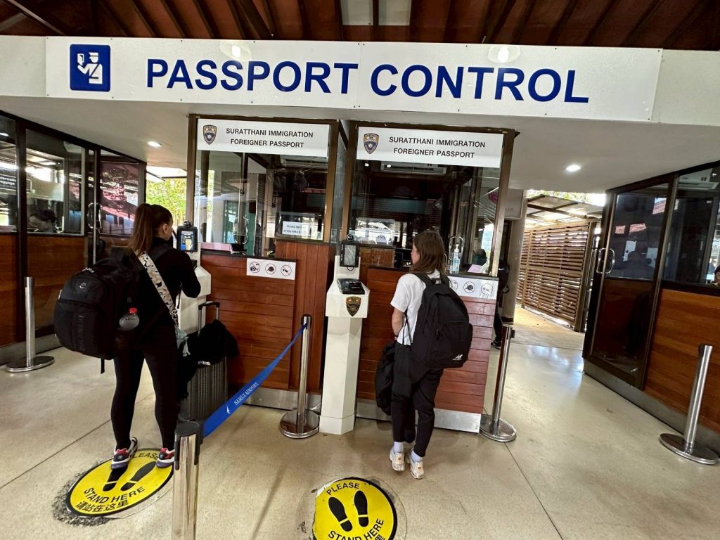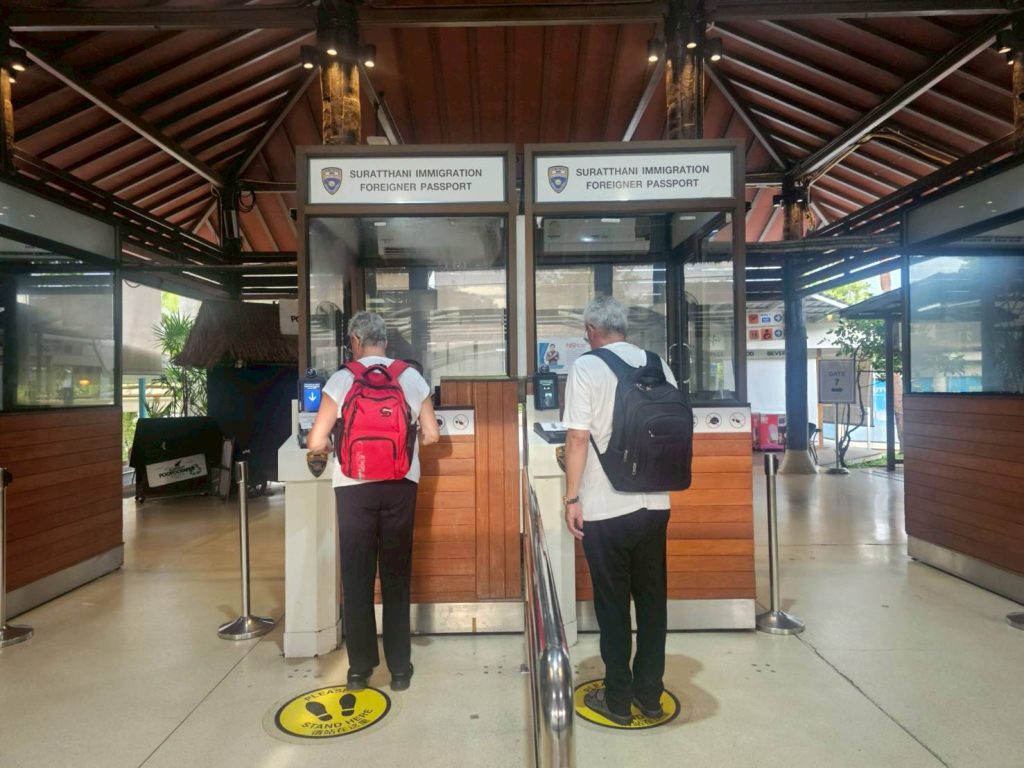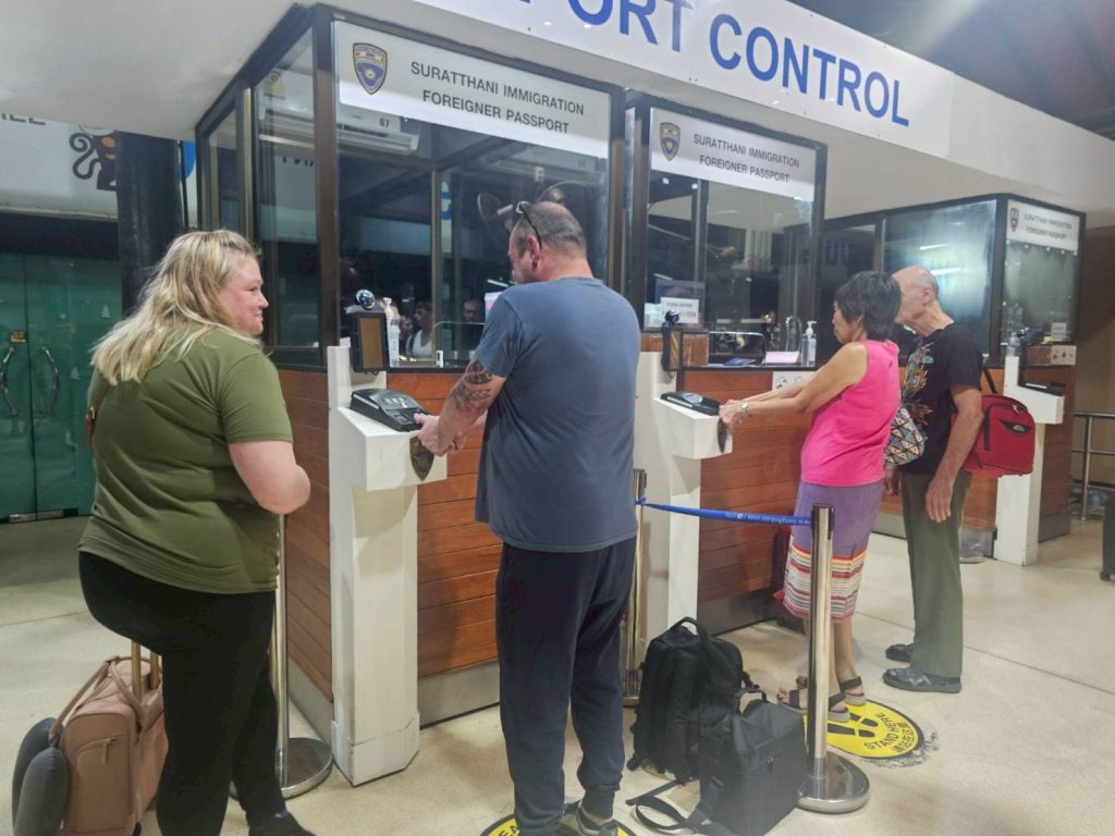วันที่ 2 เม.ย.68 ร.ต.อ.หญิง ภาวดี หวานทอง ,ร.ต.อ.ธฤติพัฒน์ สมมะลวน,ร.ต.อ.หญิง จันทร์จิรา วิถี รอง สว.ตม. จว.สุราษฎร์ธานี พร้อมด้วยเจ้าหน้าที่ ตม.จว. สุราษฎร์ธานี (ทอ.สมุย) ปฏิบัติหน้าที่ตรวจบุุคคลและพาหนะทางอากาศ, Overstay, Visa on arrival พร้อมดูแล ช่วยเหลือ อำนวยความสะดวกและความเรียบร้อยในแถวระหว่างรอเข้าใช้บริการให้กับผู้โดยสารที่เดินทางเข้า-ออก ทางอากาศในเขตพื้นที่รับผิดชอบประจำสนามบินสมุย อ.เกาะสมุย จว.สุราษฎร์ธานี
