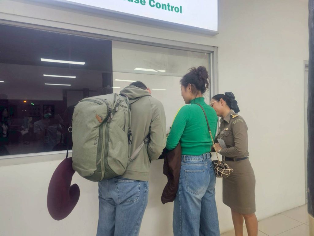 วันที่ 5 เม.ย.68 ร.ต.อ.หญิง ภาวดี หวานทอง ,ร.ต.อ.ธฤติพัฒน์ สมมะลวน,ร.ต.อ.หญิง จันทร์จิรา วิถี รอง สว.ตม. จว.สุราษฎร์ธานี พร้อมด้วยเจ้าหน้าที่ ตม.จว. สุราษฎร์ธานี (ทอ.สมุย) ปฏิบัติหน้าที่ตรวจบุุคคลและพาหนะทางอากาศ, Overstay, Visa on arrival พร้อมดูแล ช่วยเหลือ อำนวยความสะดวกและความเรียบร้อยในแถวระหว่างรอเข้าใช้บริการให้กับผู้โดยสารที่เดินทางเข้า-ออก ทางอากาศในเขตพื้นที่รับผิดชอบประจำสนามบินสมุย อ.เกาะสมุย จว.สุราษฎร์ธานี