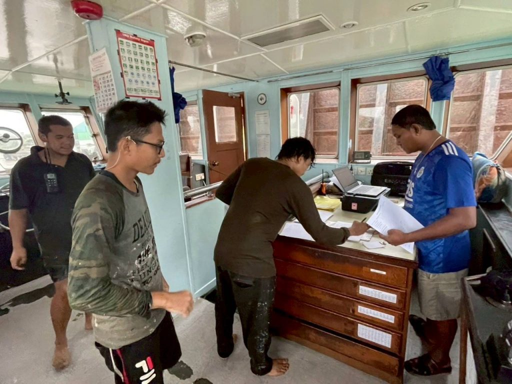 วันที่ 3 เม.ย.68 ร.ต.อ.หญิง ธมนวรรณ มณี รอง สว.ตม.จว.สุราษฎร์ธานี ,ร.ต.ท.ผดุงศักดิ์ แยบกระโทก รอง สว (อก.) ตม.จว.สุราษฎร์ธานี ,ด.ต.หญิง พิมประภา จันทร์ขาว ปฏิบัติหน้าที่ตรวจบุคคลและพาหนะทางน้ำ ในเขตพื้นที่รับผิดชอบ ประจำท่าเรืออ่าวบ้านดอน อ.เมือง จว.สุราษฎร์ธานี