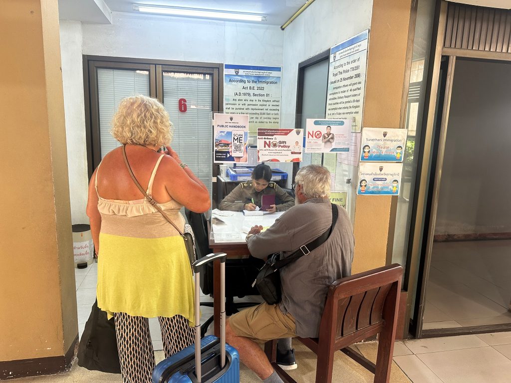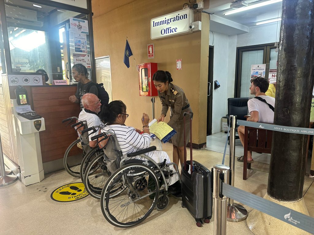 วันที่ 26 ต.ค.67 ร.ต.อ.ปิติพงษ์ เสนชู รอง สว.ตม.จว.สุราษฎร์ธานี ,ร.ต.อ.หญิง ภาวดี หวานทอง ,ร.ต.อ.หญิง จันทร์จิรา วิถี พร้อมด้วยเจ้าหน้าที่ ตม.จว.สุราษฎร์ธานี (ทอ.สมุย) ปฏิบัติหน้าที่ตรวจบุุคคลและพาหนะทางอากาศ, Overstay, Visa on arrival พร้อมดูแล ช่วยเหลือ อำนวยความสะดวกและความเรียบร้อยในแถวระหว่างรอเข้าใช้บริการให้กับผู้โดยสารที่เดินทางเข้า-ออก ทางอากาศในเขตพื้นที่รับผิดชอบประจำสนามบินสมุย อ.เกาะสมุย จว.สุราษฎร์ธานี