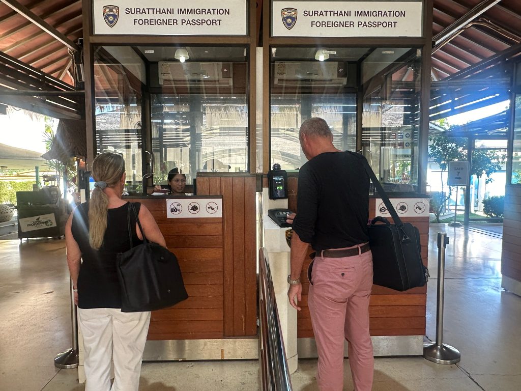 วันที่ 27 ต.ค.67 ร.ต.อ.ปิติพงษ์ เสนชู รอง สว.ตม.จว.สุราษฎร์ธานี ,ร.ต.อ.หญิง ภาวดี หวานทอง ,ร.ต.อ.หญิง จันทร์จิรา วิถี พร้อมด้วยเจ้าหน้าที่ ตม.จว.สุราษฎร์ธานี (ทอ.สมุย) ปฏิบัติหน้าที่ตรวจบุุคคลและพาหนะทางอากาศ, Overstay, Visa on arrival พร้อมดูแล ช่วยเหลือ อำนวยความสะดวกและความเรียบร้อยในแถวระหว่างรอเข้าใช้บริการให้กับผู้โดยสารที่เดินทางเข้า-ออก ทางอากาศในเขตพื้นที่รับผิดชอบประจำสนามบินสมุย อ.เกาะสมุย จว.สุราษฎร์ธานี