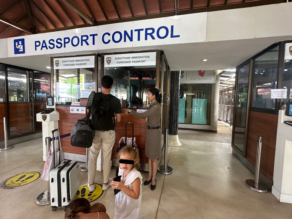 วันที่ 30 ต.ค.67 ร.ต.อ.ปิติพงษ์ เสนชู รอง สว.ตม.จว.สุราษฎร์ธานี ,ร.ต.อ.หญิง ภาวดี หวานทอง ,ร.ต.อ.หญิง จันทร์จิรา วิถี พร้อมด้วยเจ้าหน้าที่ ตม.จว.สุราษฎร์ธานี (ทอ.สมุย) ปฏิบัติหน้าที่ตรวจบุุคคลและพาหนะทางอากาศ, Overstay, Visa on arrival พร้อมดูแล ช่วยเหลือ อำนวยความสะดวกและความเรียบร้อยในแถวระหว่างรอเข้าใช้บริการให้กับผู้โดยสารที่เดินทางเข้า-ออก ทางอากาศในเขตพื้นที่รับผิดชอบประจำสนามบินสมุย อ.เกาะสมุย จว.สุราษฎร์ธานี