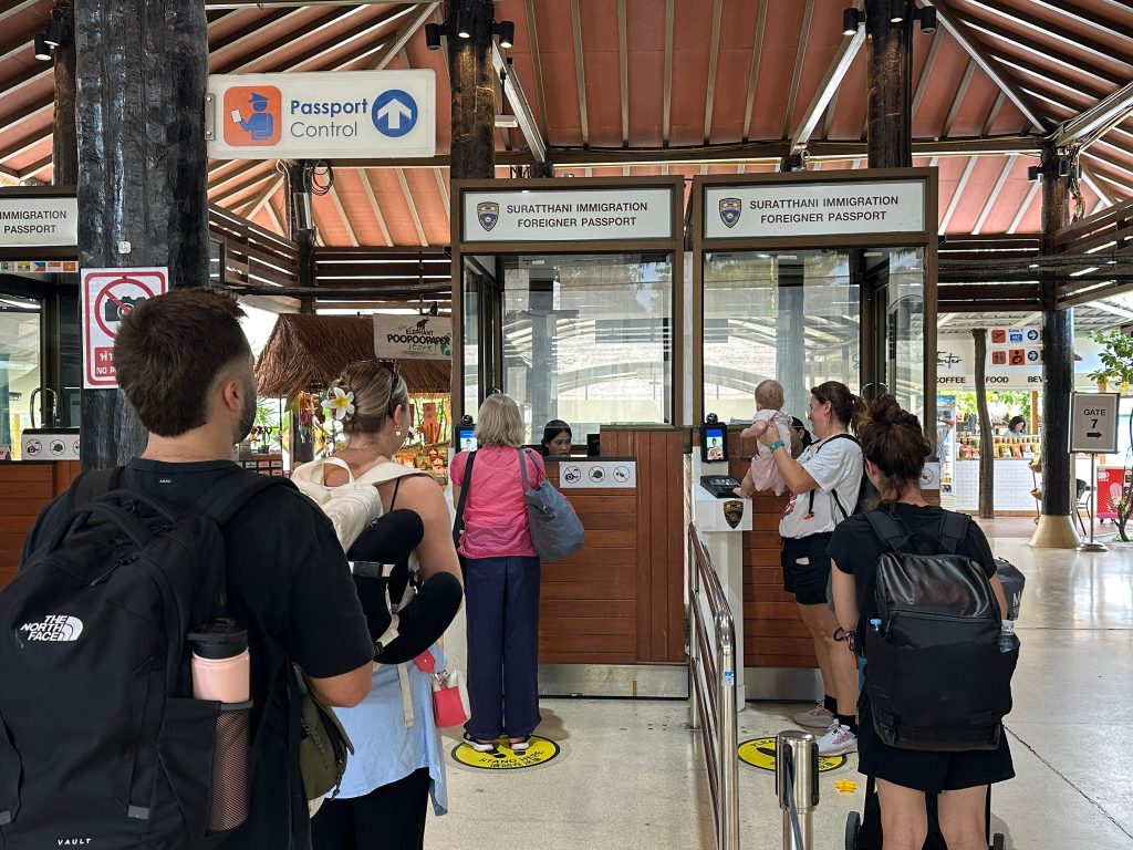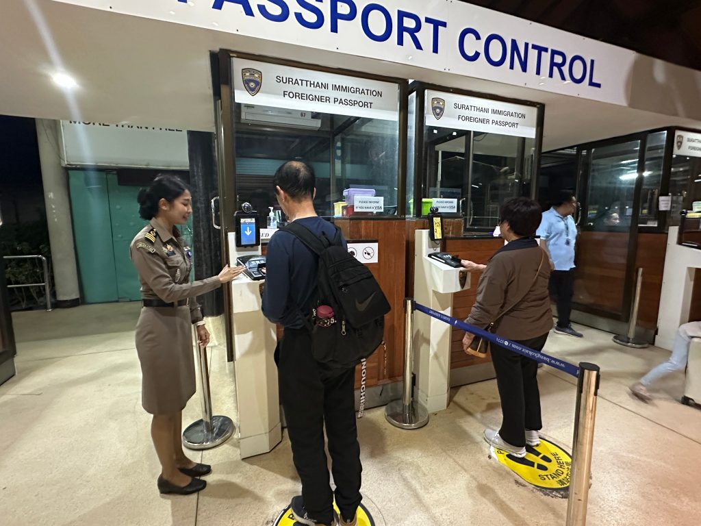 วันที่ 14 พ.ย.67 ร.ต.อ.ปิติพงษ์ เสนชู รอง สว.ตม.จว.สุราษฎร์ธานี ,ร.ต.อ.หญิง ภาวดี หวานทอง ,ร.ต.อ.หญิง จันทร์จิรา วิถี พร้อมด้วยเจ้าหน้าที่ ตม.จว.สุราษฎร์ธานี (ทอ.สมุย) ปฏิบัติหน้าที่ตรวจบุุคคลและพาหนะทางอากาศ, Overstay, Visa on arrival พร้อมดูแล ช่วยเหลือ อำนวยความสะดวกและความเรียบร้อยในแถวระหว่างรอเข้าใช้บริการให้กับผู้โดยสารที่เดินทางเข้า-ออก ทางอากาศในเขตพื้นที่รับผิดชอบประจำสนามบินสมุย อ.เกาะสมุย จว.สุราษฎร์ธานี