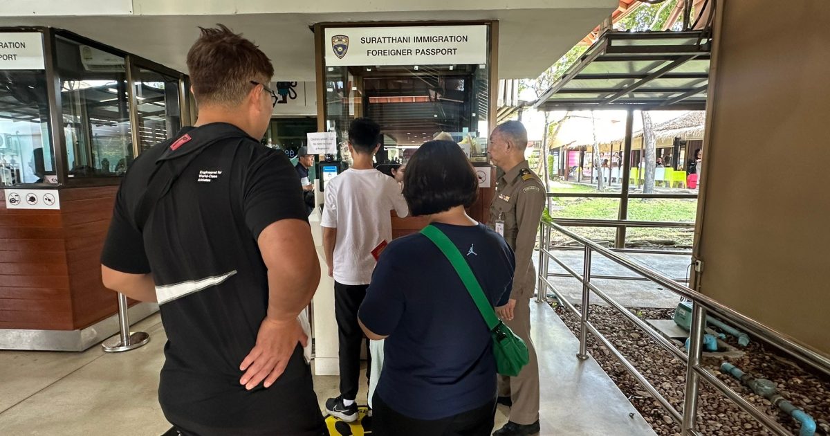 วันที่ 14 พ.ย.67 ร.ต.อ.ปิติพงษ์ เสนชู รอง สว.ตม.จว.สุราษฎร์ธานี ,ร.ต.อ.หญิง ภาวดี หวานทอง ,ร.ต.อ.หญิง จันทร์จิรา วิถี พร้อมด้วยเจ้าหน้าที่ ตม.จว.สุราษฎร์ธานี (ทอ.สมุย) ปฏิบัติหน้าที่ตรวจบุุคคลและพาหนะทางอากาศ, Overstay, Visa on arrival พร้อมดูแล ช่วยเหลือ อำนวยความสะดวกและความเรียบร้อยในแถวระหว่างรอเข้าใช้บริการให้กับผู้โดยสารที่เดินทางเข้า-ออก ทางอากาศในเขตพื้นที่รับผิดชอบประจำสนามบินสมุย อ.เกาะสมุย จว.สุราษฎร์ธานี
