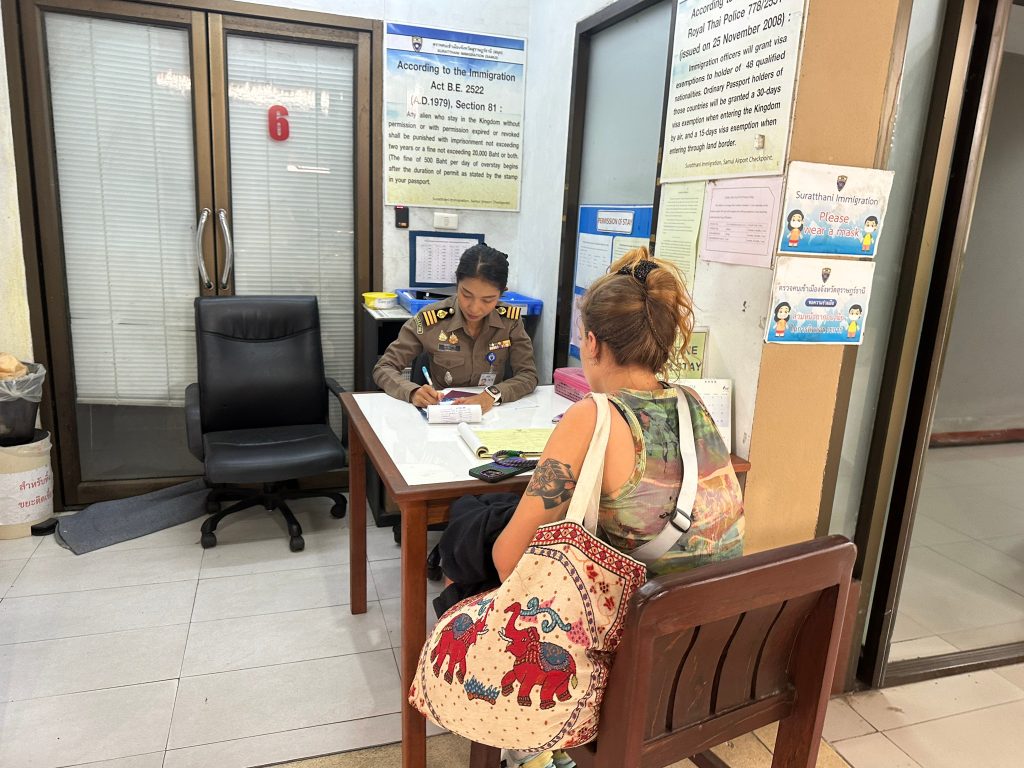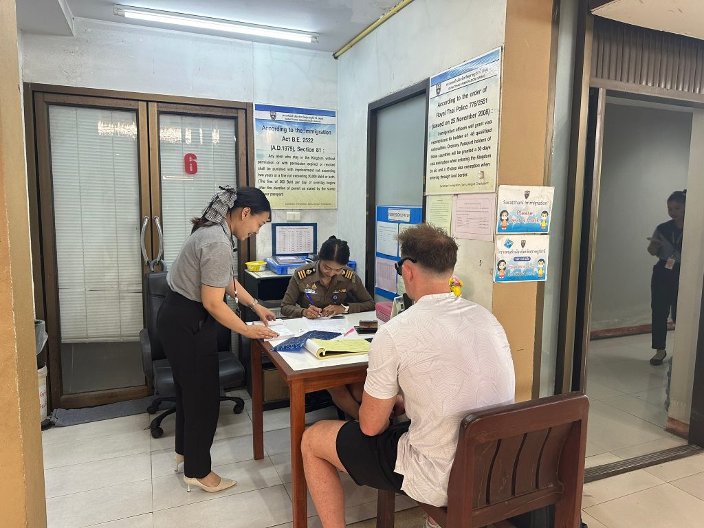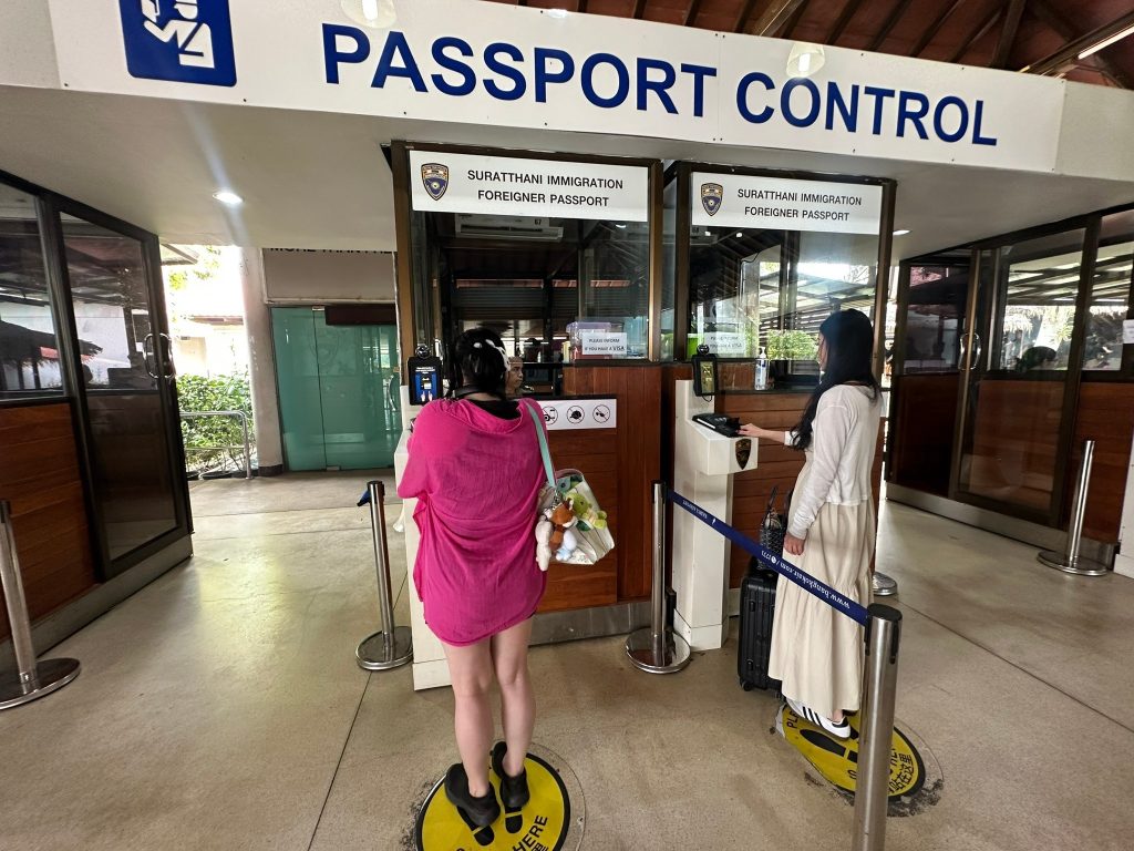 วันที่ 15 พ.ย.67 ร.ต.อ.ปิติพงษ์ เสนชู รอง สว.ตม.จว.สุราษฎร์ธานี ,ร.ต.อ.หญิง ภาวดี หวานทอง ,ร.ต.อ.หญิง จันทร์จิรา วิถี พร้อมด้วยเจ้าหน้าที่ ตม.จว.สุราษฎร์ธานี (ทอ.สมุย) ปฏิบัติหน้าที่ตรวจบุุคคลและพาหนะทางอากาศ, Overstay, Visa on arrival พร้อมดูแล ช่วยเหลือ อำนวยความสะดวกและความเรียบร้อยในแถวระหว่างรอเข้าใช้บริการให้กับผู้โดยสารที่เดินทางเข้า-ออก ทางอากาศในเขตพื้นที่รับผิดชอบประจำสนามบินสมุย อ.เกาะสมุย จว.สุราษฎร์ธานี