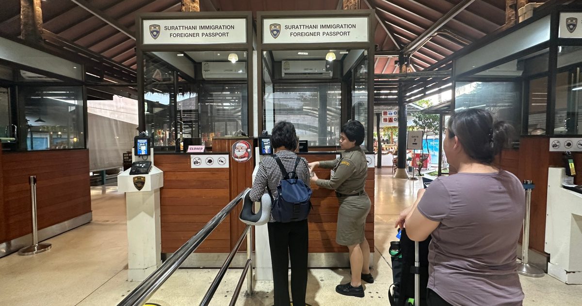 วันที่ 16 พ.ย.67 ร.ต.อ.ปิติพงษ์ เสนชู รอง สว.ตม.จว.สุราษฎร์ธานี ,ร.ต.อ.หญิง ภาวดี หวานทอง ,ร.ต.อ.หญิง จันทร์จิรา วิถี พร้อมด้วยเจ้าหน้าที่ ตม.จว.สุราษฎร์ธานี (ทอ.สมุย) ปฏิบัติหน้าที่ตรวจบุุคคลและพาหนะทางอากาศ, Overstay, Visa on arrival พร้อมดูแล ช่วยเหลือ อำนวยความสะดวกและความเรียบร้อยในแถวระหว่างรอเข้าใช้บริการให้กับผู้โดยสารที่เดินทางเข้า-ออก ทางอากาศในเขตพื้นที่รับผิดชอบประจำสนามบินสมุย อ.เกาะสมุย จว.สุราษฎร์ธานี