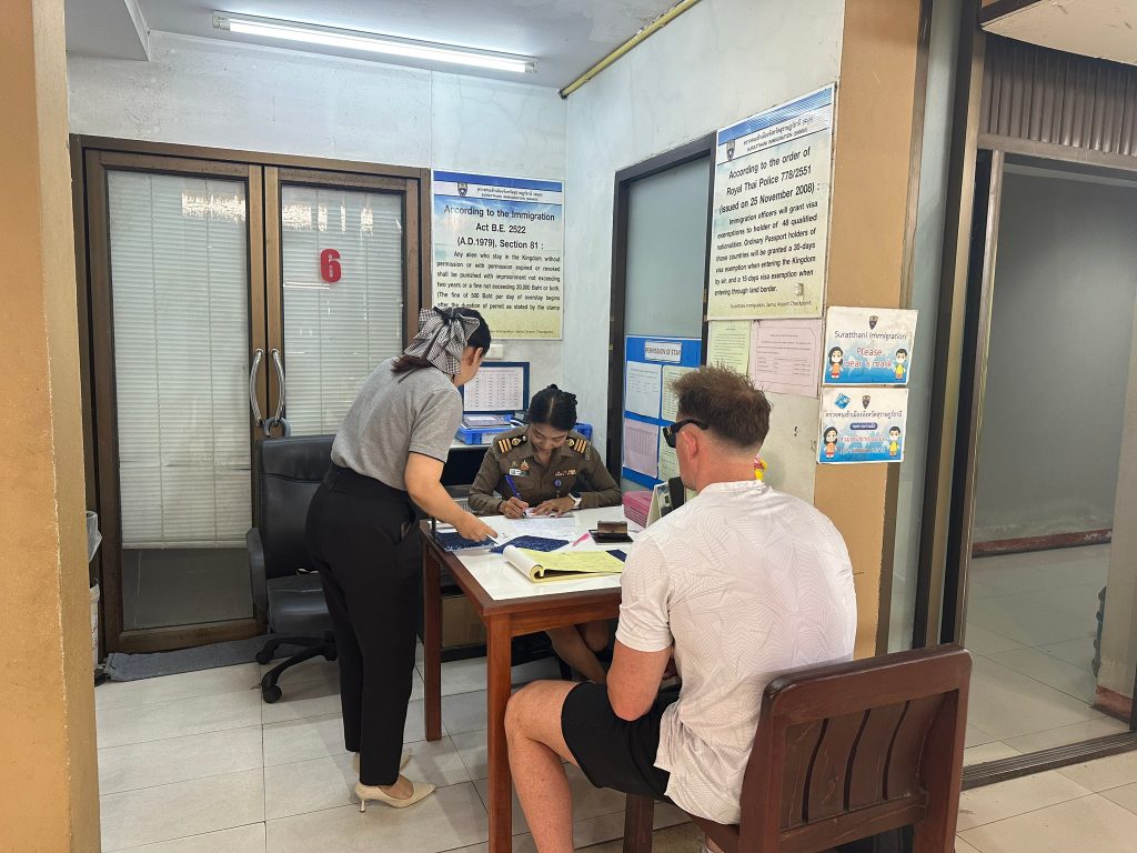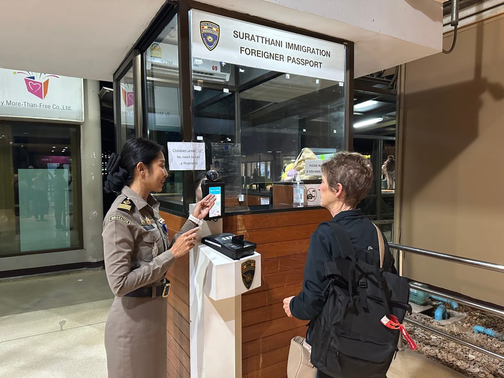 วันที่ 18 พ.ย.67 ร.ต.อ.ปิติพงษ์ เสนชู รอง สว.ตม.จว.สุราษฎร์ธานี ,ร.ต.อ.หญิง ภาวดี หวานทอง ,ร.ต.อ.หญิง จันทร์จิรา วิถี พร้อมด้วยเจ้าหน้าที่ ตม.จว.สุราษฎร์ธานี (ทอ.สมุย) ปฏิบัติหน้าที่ตรวจบุุคคลและพาหนะทางอากาศ, Overstay, Visa on arrival พร้อมดูแล ช่วยเหลือ อำนวยความสะดวกและความเรียบร้อยในแถวระหว่างรอเข้าใช้บริการให้กับผู้โดยสารที่เดินทางเข้า-ออก ทางอากาศในเขตพื้นที่รับผิดชอบประจำสนามบินสมุย อ.เกาะสมุย จว.สุราษฎร์ธานี