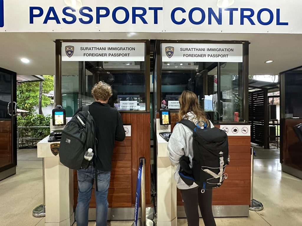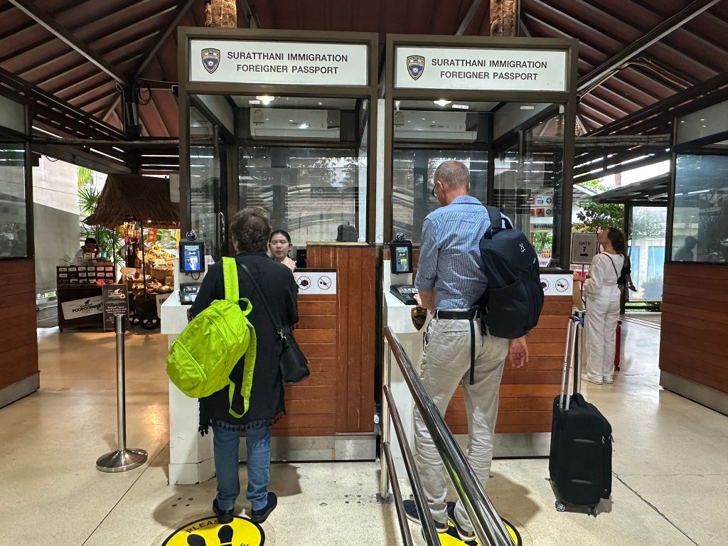 วันที่ 27 พ.ย.67 ร.ต.อ.ปิติพงษ์ เสนชู รอง สว.ตม.จว.สุราษฎร์ธานี ,ร.ต.อ.หญิง ภาวดี หวานทอง ,ร.ต.อ.หญิง จันทร์จิรา วิถี พร้อมด้วยเจ้าหน้าที่ ตม.จว.สุราษฎร์ธานี (ทอ.สมุย) ปฏิบัติหน้าที่ตรวจบุุคคลและพาหนะทางอากาศ, Overstay, Visa on arrival พร้อมดูแล ช่วยเหลือ อำนวยความสะดวกและความเรียบร้อยในแถวระหว่างรอเข้าใช้บริการให้กับผู้โดยสารที่เดินทางเข้า-ออก ทางอากาศในเขตพื้นที่รับผิดชอบประจำสนามบินสมุย อ.เกาะสมุย จว.สุราษฎร์ธานี