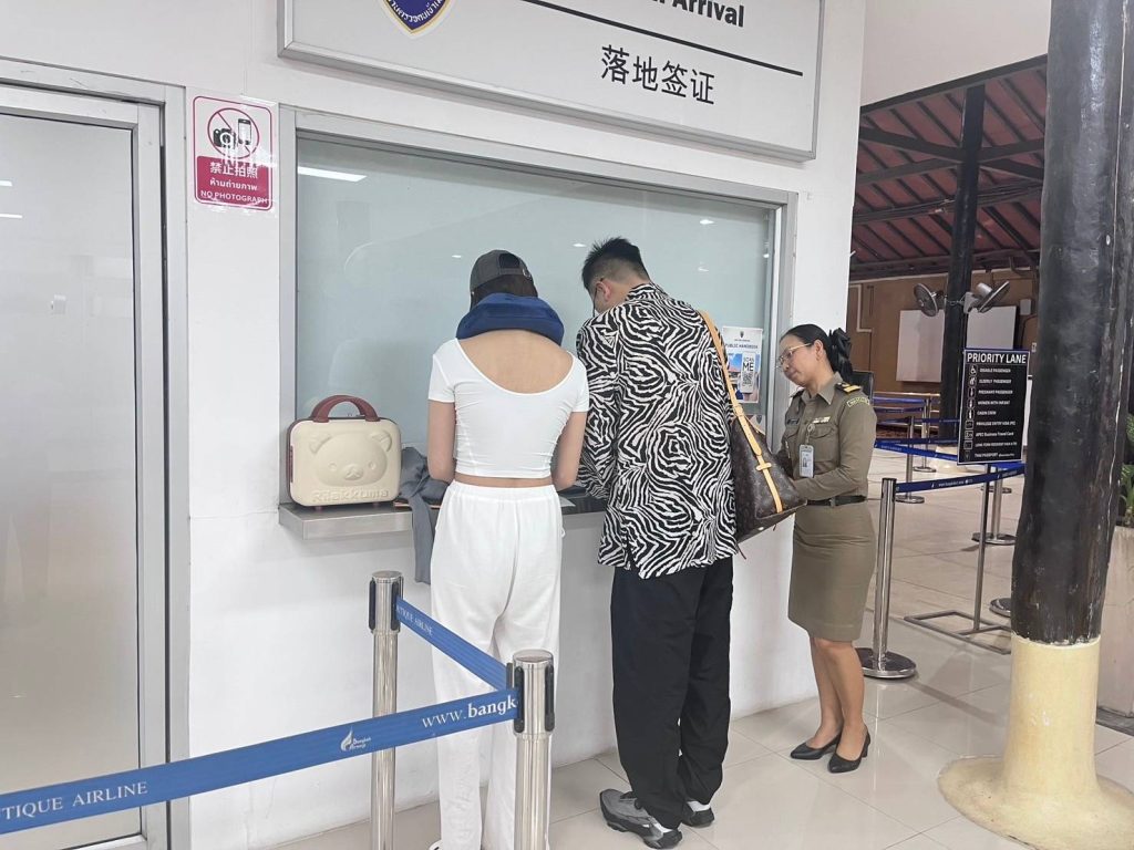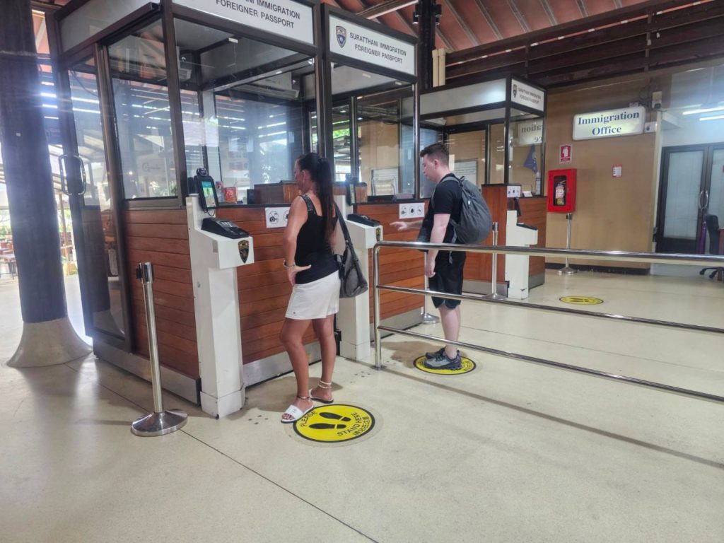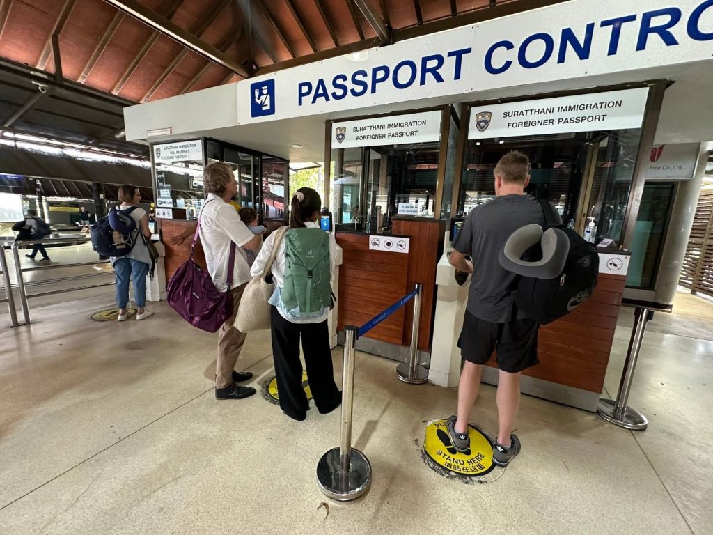 วันที่ 24 ก.พ.68 ร.ต.อ.ปิติพงษ์ เสนชู ,ร.ต.อ.หญิง ภาวดี หวานทอง ,ร.ต.อ.หญิง จันทร์จิรา วิถี รอง สว.ตม. จว.สุราษฎร์ธานี พร้อมด้วยเจ้าหน้าที่ ตม.จว. สุราษฎร์ธานี (ทอ.สมุย) ปฏิบัติหน้าที่ตรวจบุุคคลและพาหนะทางอากาศ, Overstay, Visa on arrival พร้อมดูแล ช่วยเหลือ อำนวยความสะดวกและความเรียบร้อยในแถวระหว่างรอเข้าใช้บริการให้กับผู้โดยสารที่เดินทางเข้า-ออก ทางอากาศในเขตพื้นที่รับผิดชอบประจำสนามบินสมุย อ.เกาะสมุย จว.สุราษฎร์ธานี