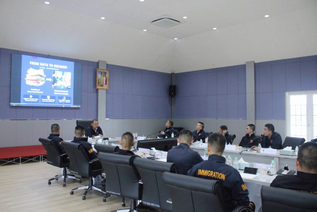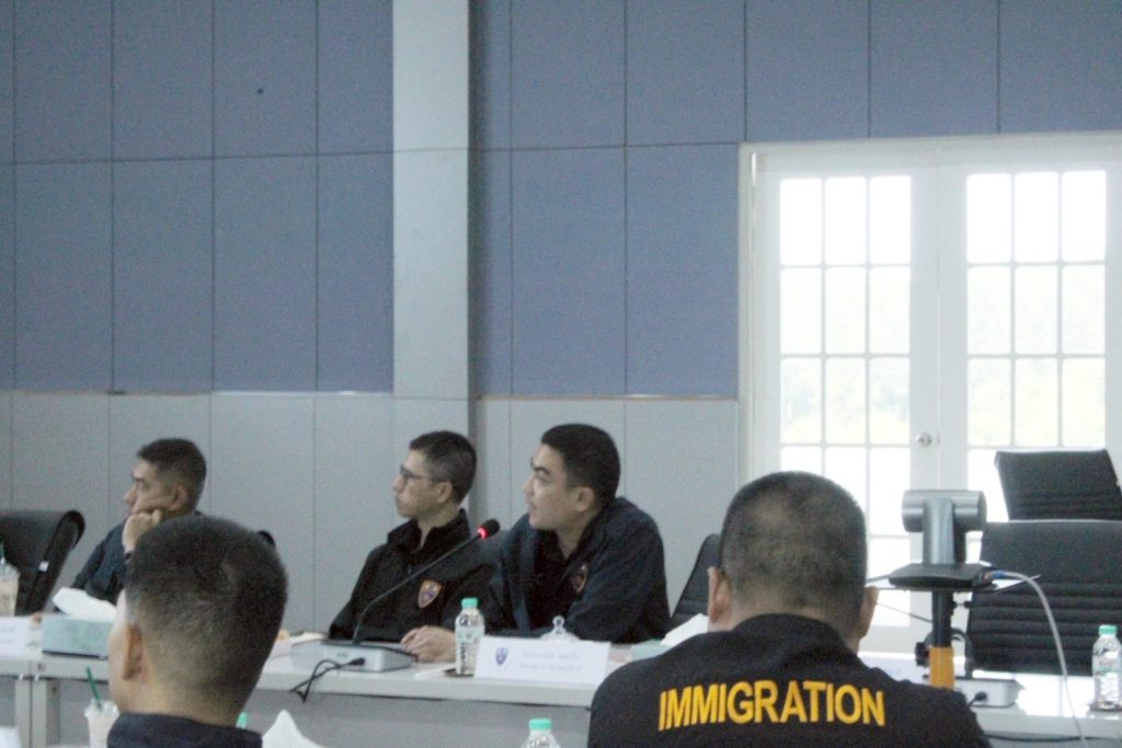 กับ พล.ต.ต.ชูธเรศ ยิ่งยงดำรงสกุล ผบก.ตม.6, พ.ต.อ.ภาณุภาคยณ์ จิตต์ประยูรตี รอง ผบก.ตม.6, พ.ต.อ.ณัฐวุฒิ แสงเดือน รอง ผบก.ตม.6 พร้อมด้วยหัวหน้าหน่วย ตม.จว./ด่าน ตม. ในสังกัด และเจ้าหน้าที่ที่เกี่ยวข้อง เข้าร่วมประชุม