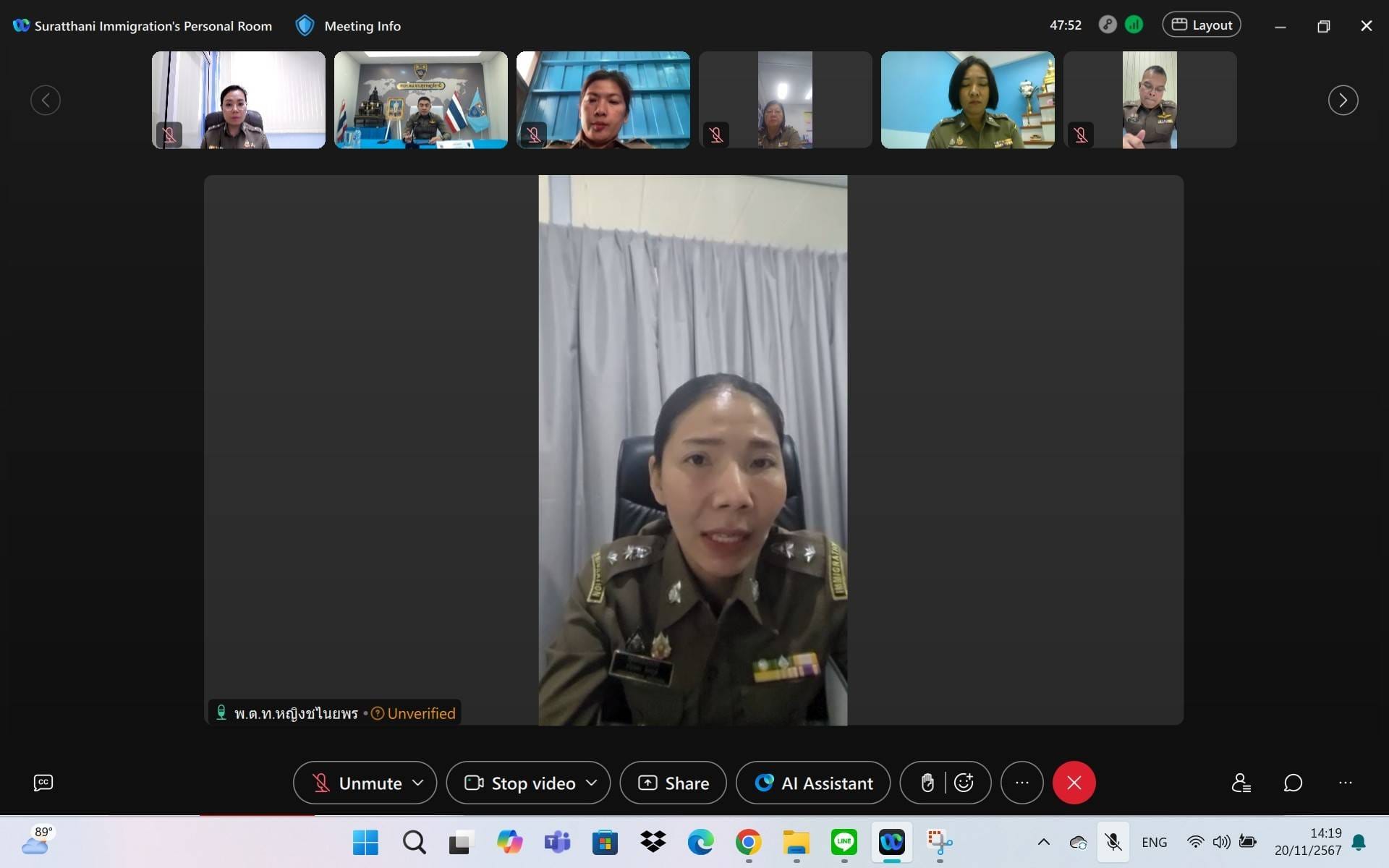 วันที่ 20 พ.ย.67 เวลา 14.00 น. ว่าที่ พ.ต.อ.นฤวัต พุทธวิโร ผกก.ตม.จว.สุราษฎร์ธานี พร้อมด้วยข้าราชการตำรวจในสังกัดฯ เข้าร่วมประชุมบริหาร ตม.จว.สุราษฎร์ธานี ครั้งที่ 11/2567 ผ่านระบบทางไกลผ่านจอภาพ Webex Meet โดยได้กำชับการปฏิบัติหน้าที่ของทุกฝ่ายให้เป็นไปอย่างรอบคอบ ฉับไว และรักษาระเบียบวินัย รวมถึงดำเนินการตามนโยบายของผู้บังคับบัญชาอย่างเคร่งครัด ณ ห้องประชุม ศปก.ตม.จว.สุราษฎร์ธานี (สมุย) ต.แม่น้ำ อ.เกาะสมุย จว.สุราษฎร์ธานี