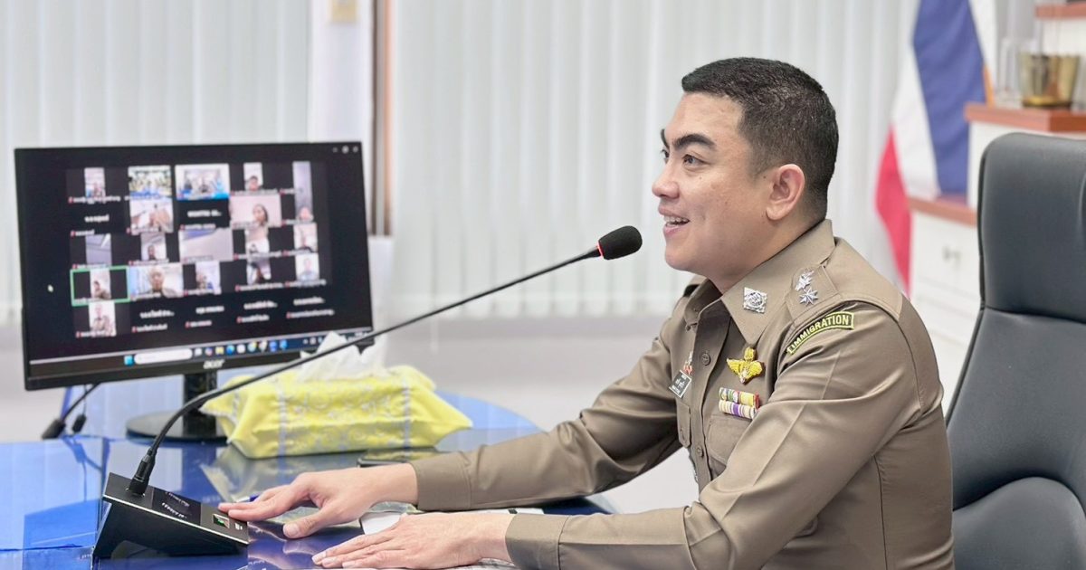 ณ ห้องประชุม ศปก.ตม.จว.สุราษฎร์ธานี และผ่านระบบการประชุมทางไกลผ่านจอภาพ ระบบ Zoom