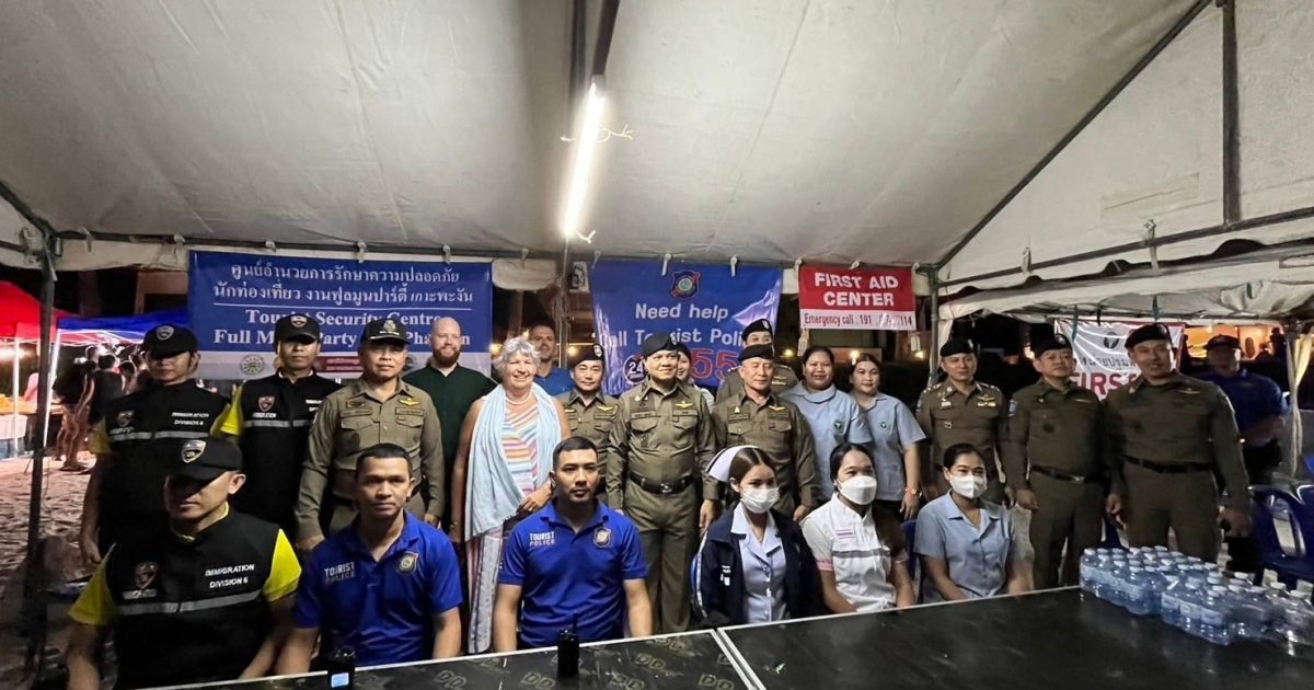 กองกำกับการสืบสวนตรวจคนเข้าเมือง 6, เจ้าหน้าที่ ป.ป.ส., เจ้าหน้าที่ฝ่ายปกครองอำเภอเกาะพะงัน,เจ้าหน้าที่กรมเจ้าท่า, เจ้าหน้าที่เทศบาลตำบลหาดริ้น และสาธารณสุขอำเภอ ร่วมปล่อยแถวชุดปฎิบัติการจัดระเบียบและดูแลความปลอดภัยแก่นักท่องเที่ยว เทศกาลฟูลมูนประจำเดือน กันยายน 2567 บริเวณชายหาดหาดริ้น ณ ลานเอนกประสงค์ หน่วยบริการประชาชนบ้านใต้ ม.6 ต.บ้านใต้ อ.เกาะพะงัน จว.สุราษฎร์ธานี โดยมี พล.ต.ท.ศักย์ศิรา เผือกอ่ำ ผบช.ทท. เป็นประธาน