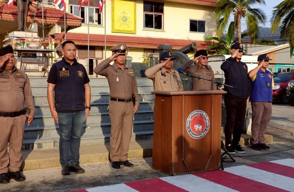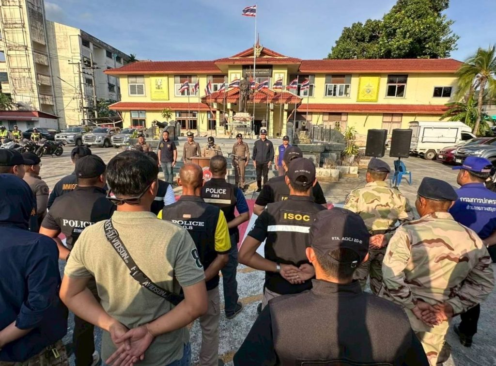 พ.ต.ท.วัสส์ธนภูมิ กุลจิตติชุติพร รอง ผกก.ตม.จว.สุราษฎร์ธานี, ว่าที่ พ.ต.ท.พสธร แสนยินดี สว.ฯ ปฏิบัติราชการ ตม.จว.สุราษฎร์ธานี, ร.ต.อ.อรุณ มูสิกิ้ม รอง สว.ตม.จว.สุราษฎร์ธานี พร้อมเจ้าหน้าที่ชุดสืบสวนฯ ชป.3 (สมุย)
