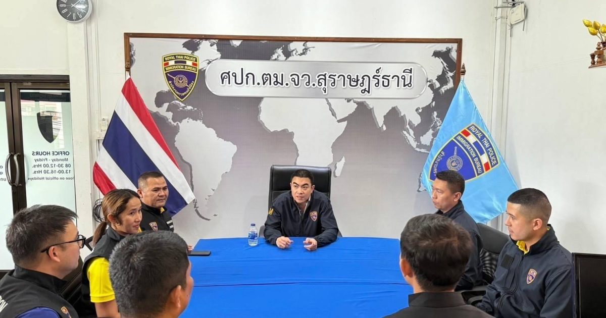 วันที่ 8 ต.ค.67 เวลา 15.00 น. พ.ต.อ.นฤวัต พุทธวิโร ผกก.ตม.จว.สุราษฎร์ธานี ได้เดินทางมาตรวจเยี่ยมข้าราชการตำรวจในสังกัด ตม.จว.สุราษฎร์ธานี (พะงัน) และประชุมมอบนโยบายการปฏิบัติงานให้แก่เจ้าหน้าที่ เพื่อให้การปฏิบัติงานเป็นไปด้วยความเรียบร้อย ตามนโยบายของผู้บังคับบัญชา ณ ห้องประชุม ศปก.ตม.จว.สุราษฎร์ธานี (พะงัน) โดยมี ร.ต.อ.สิทธิชัย ขำสุข, ร.ต.อ.สิริวัฒน์ สมหวัง รอง สว.ตม.จว. สุราษฎร์ธานี และข้าราชการตำรวจในสังกัดให้การต้อนรับ