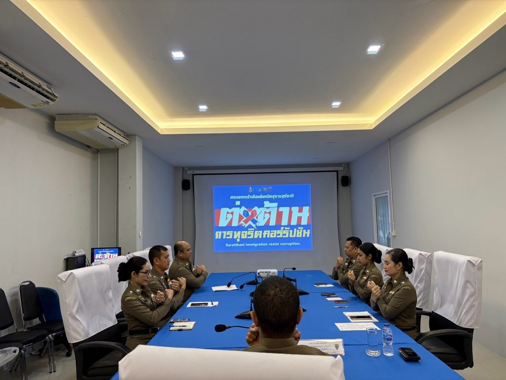 ตม.จว.สุราษฎร์ธานี ให้ความสำคัญกับการต่อต้านการทุจริตคอร์รัปชัน ตลอดจนสนับสนุนและส่งเสริมให้ข้าราชการตำรวจทุกนายมีจิตสำนึกในการป้องกันและต่อต้านการทุจริตคอร์รัปชันในทุกรูปแบบ เพื่อสร้างความโปร่งใส มีมาตรฐานในการปฏิบัติงานที่ชัดเจน และเพื่อให้การบริหารราชการเป็นไปอย่างมีประสิทธิภาพและมีธรรมาภิบาล อันจะทำให้ประชาชนเกิดความมั่นใจ ศรัทธาและไว้วางใจในการบริหารงานภาครัฐ