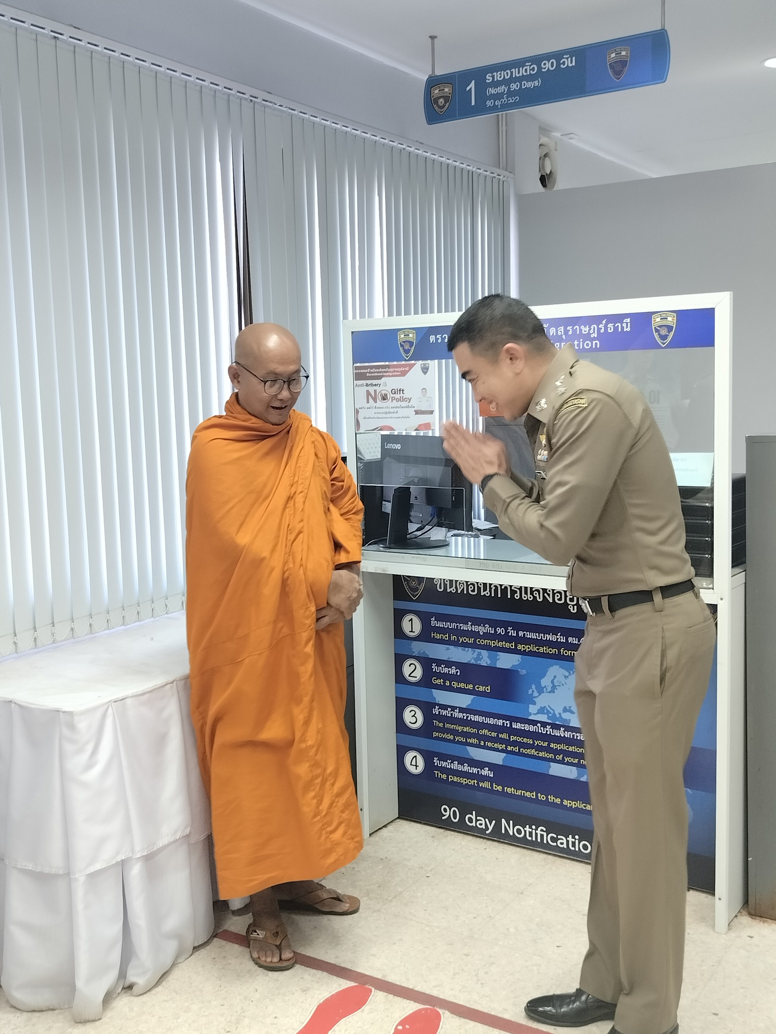 วันที่ 29 ก.พ.67 ว่าที่ พ.ต.อ.นฤวัต พุทธวิโร ผกก.ตม.จว.สุราษฎร์ธานี ได้ประชาสัมพันธ์และแสดงเจตนารมณ์ของ ตม.จว.สุราษฎร์ธานี ไม่รับของขวัญและของกำนัลทุกชนิดจากกการปฏิบัติหน้าที่ ทั้งในขณะ ก่อน และหลังปฎิบัติหน้าที่ (NO GIFT POLICY) และประกาศนโยบายต่อต้านการรับสินบนในทุกกรณี (Anti – Bribery Policy) ให้แก่ผู้มารับบริการ ณ บริเวณงานบริการคนต่างด้าว ตม.จว.สุราษฎร์ธานี เพื่อสร้างวัฒนธรรมการทำงานอย่างโปร่งใส