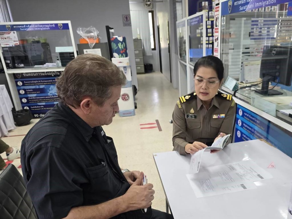 ช่วงวันที่ 1 เม.ย. 2568 ถึง 4 เม.ย.2568 เจ้าหน้าที่งานบริการคนเข้าเมือง ตม.จว.สุราษฎร์ธานี ได้ให้บริการขออยู่ต่อ (ระยะสั้น ระยะยาว แรงงานต่างด้าว 4 สัญชาติ) ,การแจ้งอยู่เกินกว่า 90 วัน ,RE-ENTRY