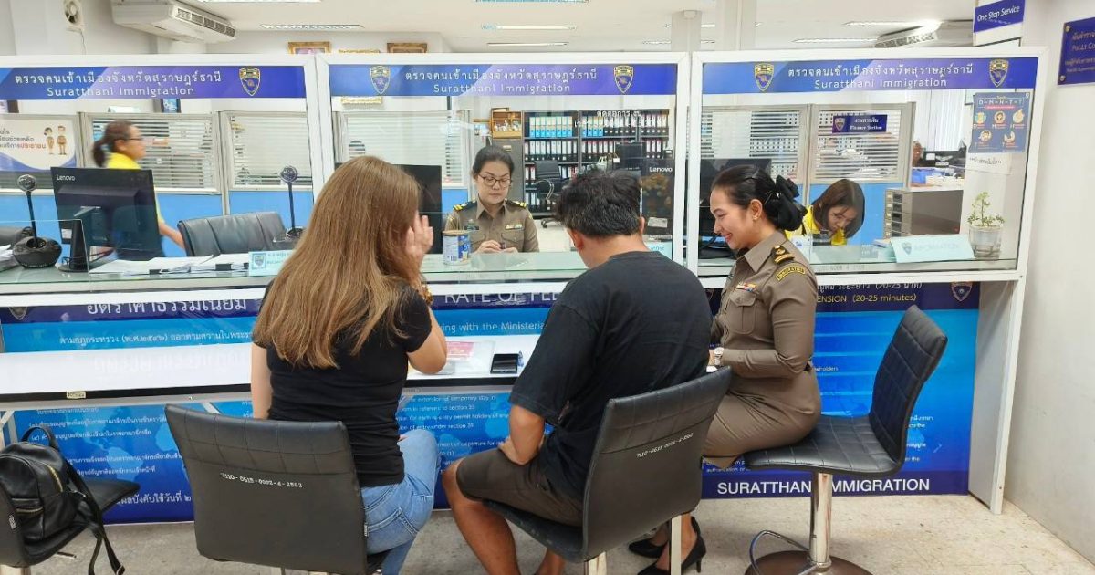 ช่วงวันที่ 21 เม.ย. 2568 ถึง 25 เม.ย.2568 เจ้าหน้าที่งานบริการคนเข้าเมือง ตม.จว.สุราษฎร์ธานี ได้ให้บริการขออยู่ต่อ (ระยะสั้น ระยะยาว แรงงานต่างด้าว 4 สัญชาติ) ,การแจ้งอยู่เกินกว่า 90 วัน ,RE-ENTRY