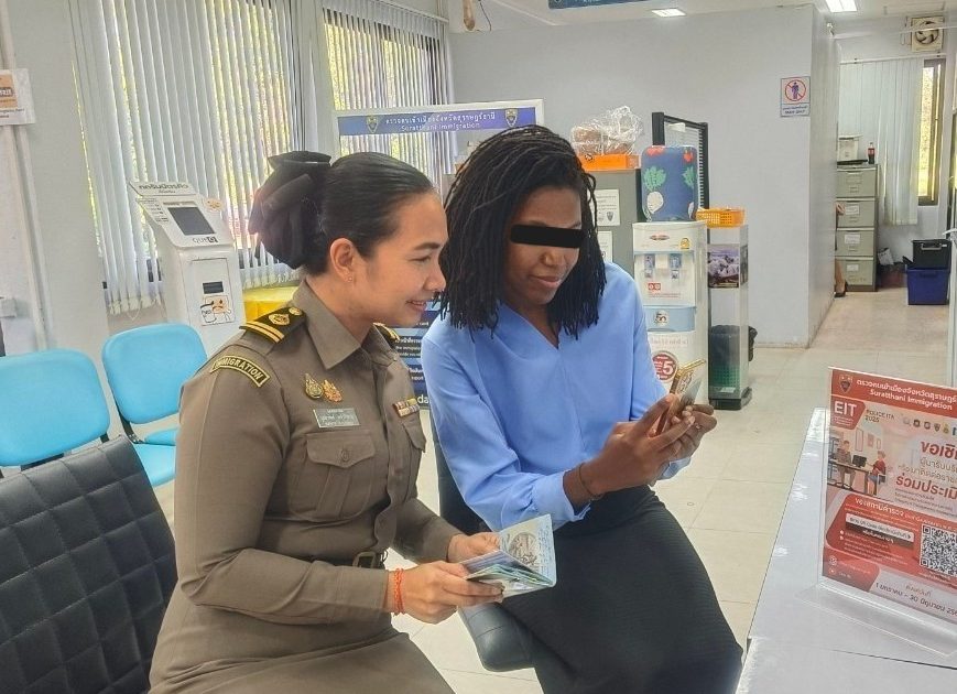 ช่วงวันที่ 12 พ.ค. 2568 ถึง 16 พ.ค.2568 เจ้าหน้าที่งานบริการคนเข้าเมือง ตม.จว.สุราษฎร์ธานี ได้ให้บริการขออยู่ต่อ (ระยะสั้น ระยะยาว แรงงานต่างด้าว 4 สัญชาติ) ,การแจ้งอยู่เกินกว่า 90 วัน ,RE-ENTRY