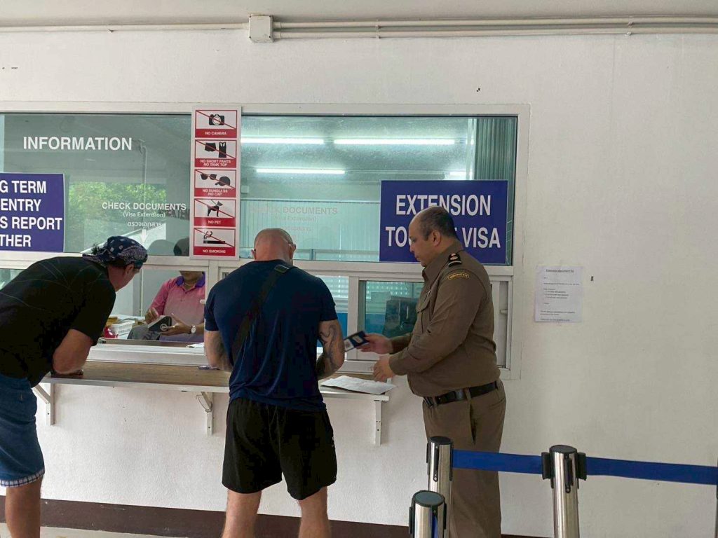 เจ้าหน้าที่ปฏิบัติงานขออยู่ต่อในราชอาณาจักร เป็นการชั่วคราวให้แก่คนต่างด้าวที่เข้ามาขอรับบริการ การรับแจ้งที่อยู่ในราชอาณาจักรเกิน 90 วัน จำนวน 7,119 ราย ประกอบด้วยสัญชาติเมียนมา 5,602 ราย สัญชาติลาว 404 ราย สัญชาติกัมพูชา 84 ราย สัญชาติฝรั่งเศส 134 ราย สัญชาติบริติช 129 ราย สัญชาติรัสเซีย 192 ราย และสัญชาติอื่นๆ 574 ราย