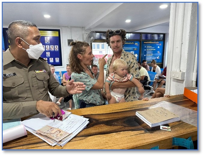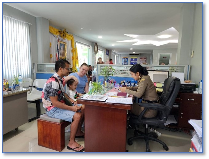 เจ้าหน้าที่ปฏิบัติงานขออยู่ต่อในราชอาณาจักร เป็นการชั่วคราวให้แก่คนต่างด้าวที่เข้ามาขอรับบริการ การรับแจ้งที่อยู่ในราชอาณาจักรเกิน 90 วัน จำนวน 6,225 ราย ประกอบด้วยสัญชาติเมียนมา 4,959 ราย สัญชาติลาว 339 ราย สัญชาติกัมพูชา 66 ราย สัญชาติฝรั่งเศส 115 ราย สัญชาติบริติช 110