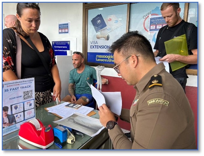 เจ้าหน้าที่งานบริการคนเข้าเมือง ตม.จว.สุราษฎร์ธานี ได้ประชาสัมพันธ์การรายงานตัว 90 วัน ,