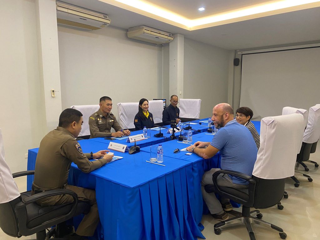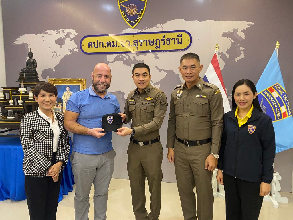 วันที่ 25 ต.ค. 67 เวลา 10.30 น. นายสเวน สปรินท์ (Mr. Sven Sprint) ผู้ช่วยฑูตฝ่ายกงสุล หัวหน้าแผนกผู้ต้องขัง สถานเอกอัครราชฑูตสหพันธ์สาธารณรัฐเยอรมนีประจำประเทศไทย พร้อมคณะ ได้มาเยือน ตม.จว.สุราษฎร์ธานี (สมุย) โดยมี ว่าที่ พ.ต.อ.นฤวัต พุทธวิโร ผกก.ตม.จว.สุราษฎร์ธานี, พ.ต.ท.วัสส์ธนภูมิ กุลจิตติชุติพร รอง ผกก.ตม.จว.สุราษฎร์ธานี, ว่าที่ พ.ต.ต.หญิง ปาณิศา มุขรัษฎา สว.ตม.จว.สุราษฎร์ธานี และ ร.ต.อ.อรุณ มูสิกิ้ม รอง สว.ตม.จว.สุราษฎร์ธานี ให้การต้อนรับ โดยได้ประชุมหารือ แลกเปลี่ยน รับทราบข้อมูลทั่วไป และขอความร่วมมือในการช่วยเหลือชาวเยอรมันในประเทศไทย ณ ห้องประชุมแม่น้ำ ศปก.ตม.จว.สุราษฎร์ธานี (สมุย)