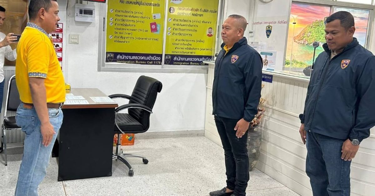 วันที่ 4 พ.ค.67 เวลา 09.00 น. นายเจษฎา จิตรัตน์ ผู้ว่าราชการจังหวัดสุราษฎร์ธานี พร้อมคณะได้เดินทางมาตรวจเยี่ยมข้าราชการตำรวจ ตม.จว.สุราษฎร์ธานี (เกาะเต่า) ณ ที่ว่าการอำเภอเกาะพะงันส่วนหน้า (เกาะเต่า) ชั้น 2 ม.3 ต.เกาะเต่า อ.เกาะพะงัน จว.สุราษฎร์ธานี โดยมี ร.ต.ต.ภรภัทร เมืองชู รอง สว.(สส.)ตม.จว.สุราษฎร์ธานี พร้อมชุดชป.5 (เกาะเต่า) ให้การต้อนรับ