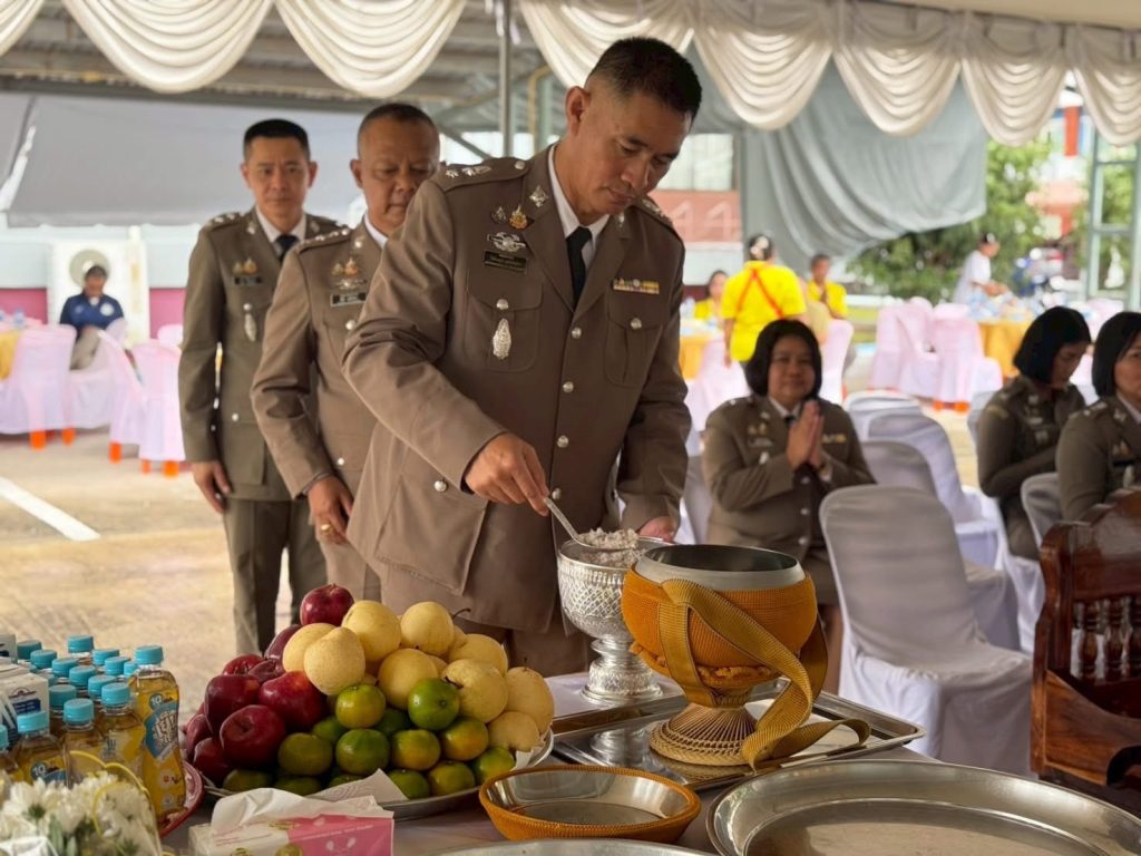 พ.ต.ท.วัสส์ธนภูมิ กุลจิตติชุติพร รอง ผกก.ตม.จว.สุราษฎร์ธานี เป็นประธานในพิธีสงฆ์