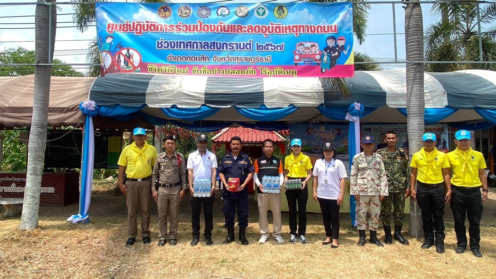 วันที่ 15 เม.ย.2567 เวลา 10.00 น. พ.ต.ท.หญิง ชไนยพร ฉัตรภูมิ สว.ตม.จว.สุราษฎร์ธานี พร้อมเจ้าหน้าที่ชุดสืบสวน ตม.จว.สุราษฎร์ธานี ใช้รถยนต์ตรวจการณ์ไฟฟ้าอัจฉริยะ (SMART PATROL CAR:SPC) ออกปฏิบัติหน้าที่รักษาความปลอดภัย และอำนวยความความสะดวกให้แก่ประชาชนและนักท่องเที่ยวในช่วงเทศกาลวันสงกรานต์ ประจำปี พ.ศ.2567 บริเวณจุดบริการประชาชนสามแยกบ้านใน ต.ปากแพรก อ.ดอนสัก จว.สุราษฎร์ธานี พร้อมนี้ได้มอบน้ำดื่มและเครื่องดื่มบำรุงกำลังให้แก่เจ้าหน้าที่ผู้ปฏิบัติงาน