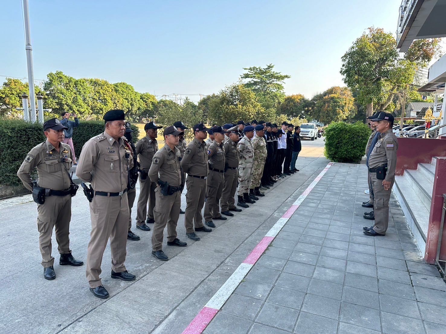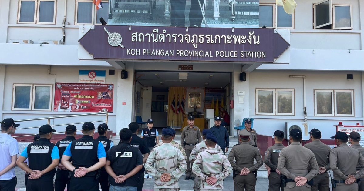 วันที่ 5 เม.ย.67 เวลา 17.00 น. พ.ต.ท.หญิง สงวนทรัพย์ ลาภสนอง สว.ตม.จว.สุราษฎร์ธานี พร้อมด้วยเจ้าหน้าที่ ชป.4(พะงัน) ตม.อาสา(พะงัน)รวมจำนวน 9 นาย ,เจ้าหน้าที่สภ.เกาะพะงัน จำนวน 16 นาย ,เจ้าหน้าที่ กก.สืบสวน ภ.จว.สุราษฏร์ธานี จำหนวน 4 นาย,ตำรวจท่องเที่ยว จำนวน 4 นาย,เจ้าหน้าที่ฝ่ายปกครอง อ.เกาะพะงัน จำนวน 7 นาย ร่วมปลอ่ยแถวระดมกวาดล้าง อาชญากรรม ณ สภ.เกาะพะงัน โดยมี พ.ต.อ.ปัญญา นิรัตมานนท์ ผกก.สภ.เกาะพะงัน เป็นประธาน