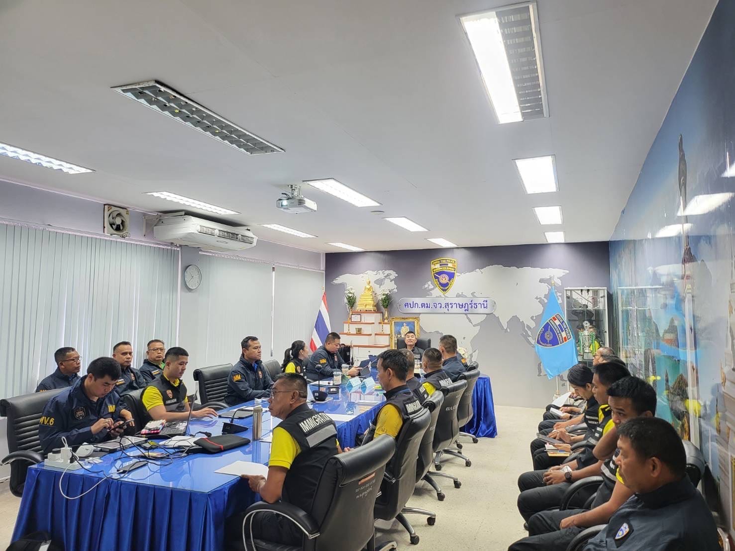 วันที่ 14 พ.ค.67 เวลา 10.00 น. พ.ต.อ.ภาณุภาคยณ์ จิตต์ประยูรตี รอง ผบก.สส.สตม. ปฏิบัติราชการ บก.ตม.6 ได้เดินทางมาตรวจเยี่ยมข้าราชการตำรวจในสังกัด ตม.จว.สุราษฎร์ธานี และประชุมมอบนโยบายการปฏิบัติงานให้แก่เจ้าหน้าที่สืบสวนปราบปราม เพื่อให้การปฏิบัติงานเป็นไปด้วยความเรียบร้อย ตามนโยบายของผู้บังคับบัญชา ณ ห้องประชุม ศปก.ตม.จว.สุราษฎร์ธานี