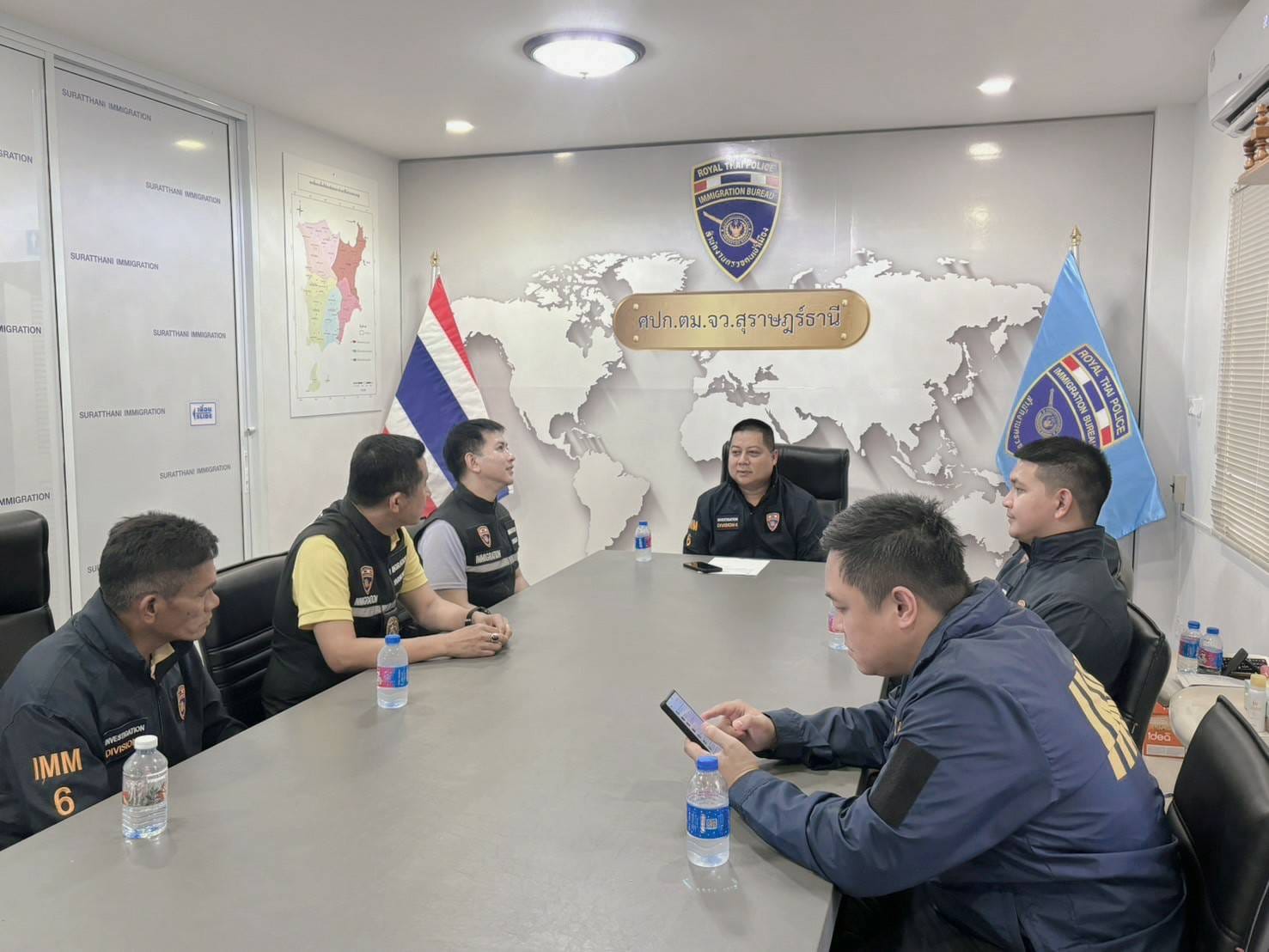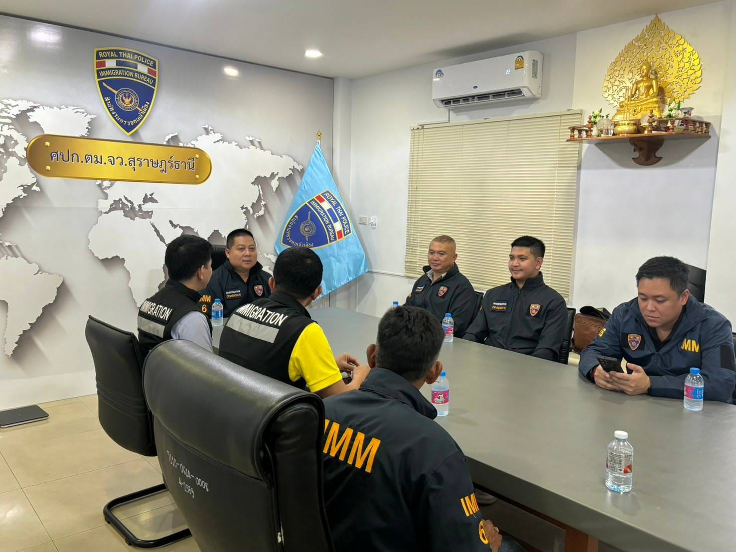 วันที่ 23 เม.ย.67 พ.ต.อ.เด่นชาย เจริญยุทธ ผกก.สส.บก.ตม.6 พร้อมคณะ ได้เดินทางมาตรวจเยี่ยมและมอบนโยบายการปฏิบัติหน้าที่ให้แก่ข้าราชการตำรวจในสังกัด ตม.จว.สุราษฎร์ธานี ณ ที่ทำการงานสืบสวนปราบปรามตรวจคนเข้าเมืองจังหวัดสุราษฎร์ธานี(สมุย) ต.บ่อผุด อ.เกาะสมุย และที่ทำการ ตม.จว.สุราษฎร์ธานี (พะงัน) ต.เกาะพะงัน อ.เกาะพะงัน จว.สุราษฎร์ธานี