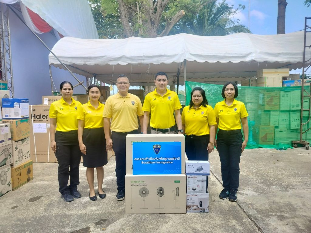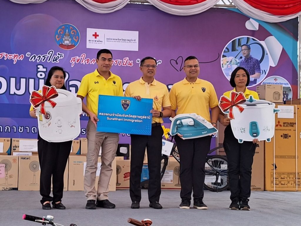 วันที่ 5 ก.พ.68 เวลา 11.00 น. ว่าที่ พ.ต.อ.นฤวัต พุทธวิโร ผกก.ตม.จว.สุราษฎร์ธานี และ พ.ต.ท.พิงคะรัตน์ ซ้ายขวัญ รอง ผกก.ตม.จว.สุราษฎร์ธานี พร้อมด้วย ข้าราชการตำรวจในสังกัด ร่วมมอบสิ่งของสนับสนุนการจัดงานออกร้านเหล่ากาชาดจังหวัดสุราษฎร์ธานี “วันรวมน้ำใจ ช่วยกาชาด” ณ สำนักงานเหล่ากาชาดจังหวัดสุราษฎร์ธานี อ.เมือง จว.สุราษฎร์ธานี โดยมีนายธีรุตม์ ศุภวิบูลย์ผล ผู้ว่าราชการจังหวัดสุราษฎร์ธานี เป็นประธานการรับมอบ