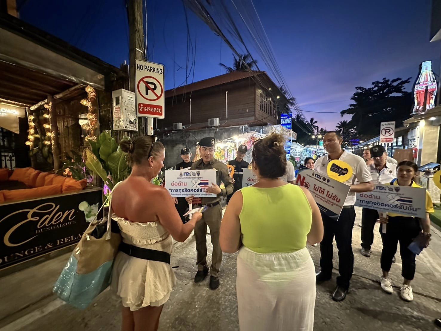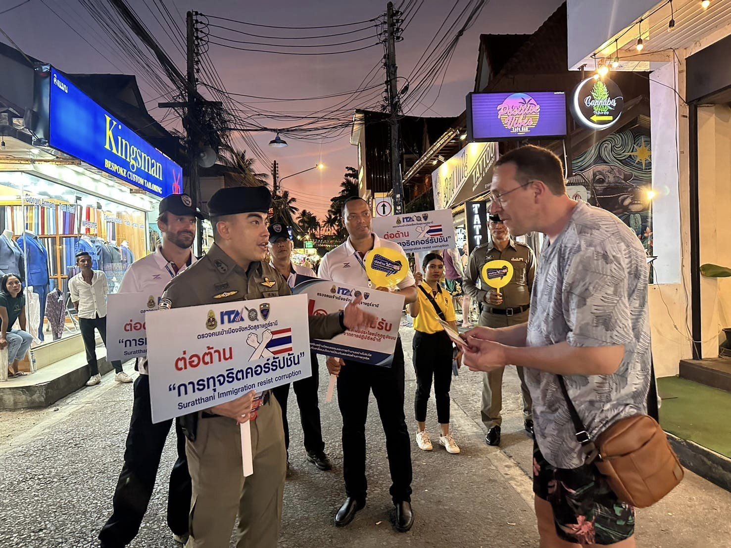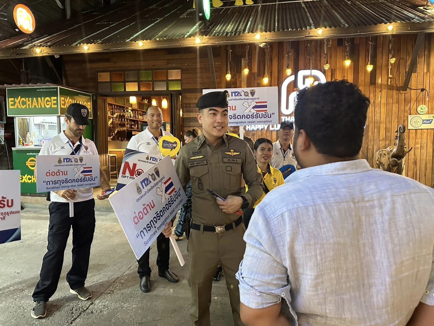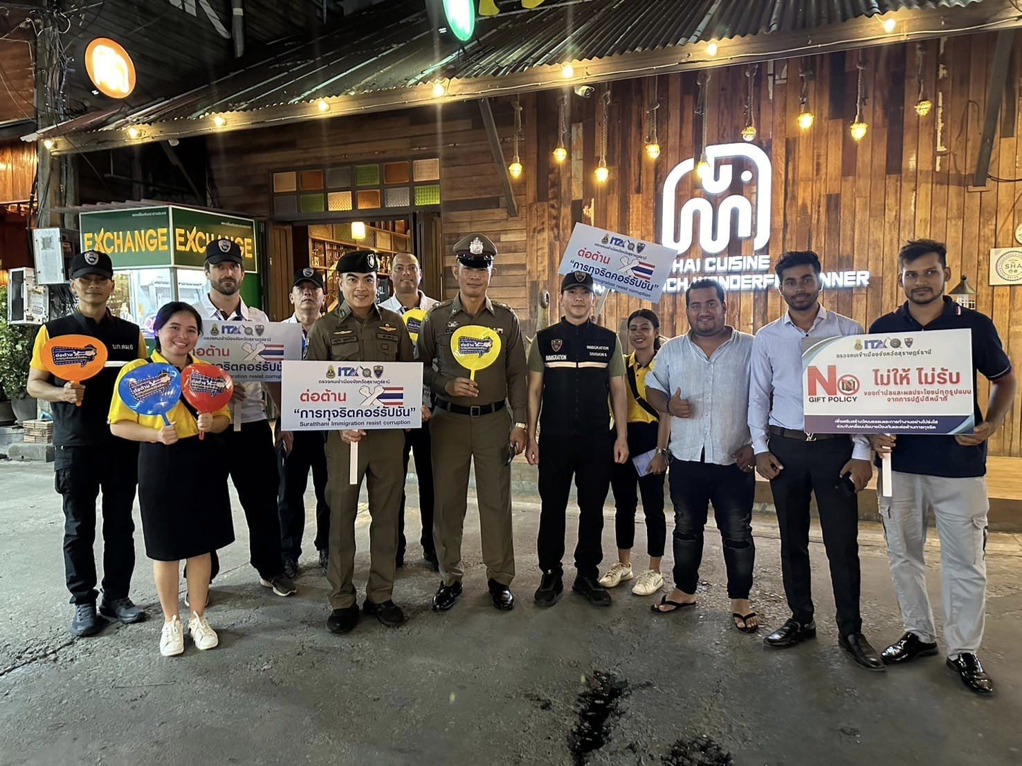 วันที่ 29 มี.ค.67 ว่าที่ พ.ต.อ.นฤวัต พุทธวิโรผกก.ตม.จว.สุราษฎร์ธานี และ พ.ต.ท.วัสส์ธนภูมิ กุลจิตติชุติพร รอง ผกก.ตม.จว.สุราษฎร์ธานี พร้อมด้วย ข้าราชการตำรวจในสังกัด และอาสาสมัครตรวจคนเข้าเมือง ร่วมรณรงค์ต่อต้าน การทุจริตคอร์รัปชัน ตามนโยบายต่อต้านการ รับสินบนในทุกกรณี (Anti-Bribery Policy) ไม่รับของขวัญและของกำนัลทุกชนิดจากการปฏิบัติหน้าที่ ทั้งในขณะ ก่อน และหลังปฎิบัติ หน้าที่ (NO GIFT POLICY) พร้อมทั้งประชาสัมพันธ์ช่องทาง การแจ้งเบาะแส ช่องทางการร้องเรียน หากพบเห็นหรือสงสัยการปฏิบัติหน้าที่ ของ เจ้าหน้าที่ ตม.จว.สุราษฎร์ธานี สามารถแจ้งข้อร้องเรียนผ่านช่องทางต่างๆ ได้ ตลอด 24 ชั่วโมง ณ พื้นที่ชุมชนฟิชเชอร์แมน วิลเลจ (Fisherman’s Village) ต.บ่อผุด อ.เกาะสมุย จว.สุราษฎร์ธานี