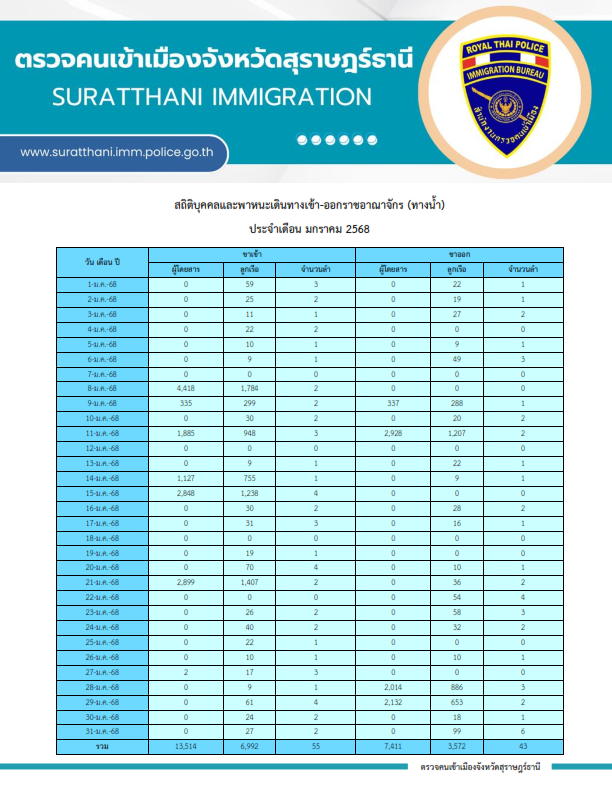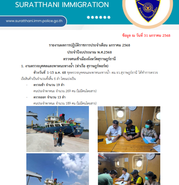 รายงานผลการปฏิบัติราชการ งานตรวจบุคคลและพาหนะทางน้ำ ประจำเดือน มกราคม 2568 31 มกราคม 2568 โดย adminnut / ข่าวภารกิจผู้บังคับบัญชา และ เหตุการณ์ข่าวสาร ที่เกี่ยวข้องกับ ตม.จว.สุราษฎร์ธานี,งานตรวจบุคคลและพาหนะ ม.ค.68 Post Views: 11