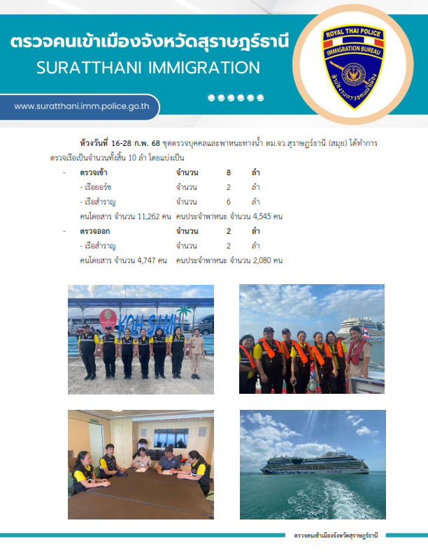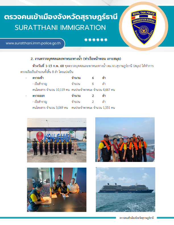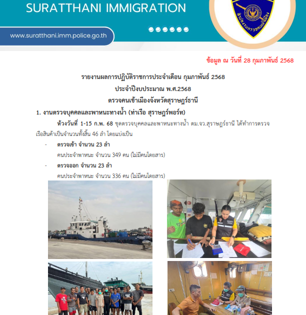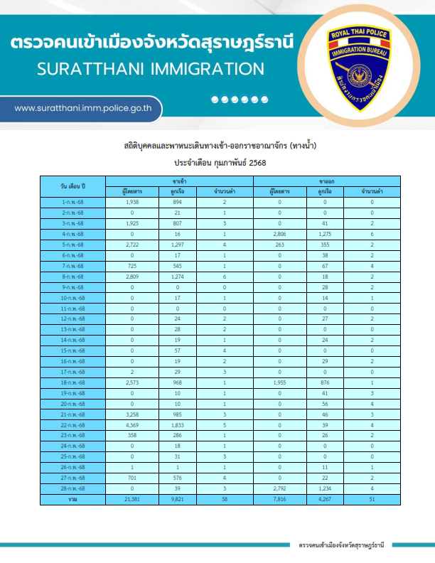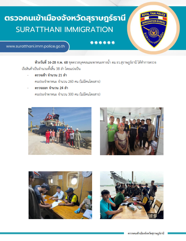 รายงานผลการปฏิบัติราชการ งานตรวจบุคคลและพาหนะทางน้ำ ประจำเดือน กุมภาพันธ์ 2568 28 กุมภาพันธ์ 2568 โดย adminnut / ข่าวภารกิจผู้บังคับบัญชา และ เหตุการณ์ข่าวสาร ที่เกี่ยวข้องกับ ตม.จว.สุราษฎร์ธานี,งานตรวจบุคคลและพาหนะ ก.พ.68 Post Views: 19