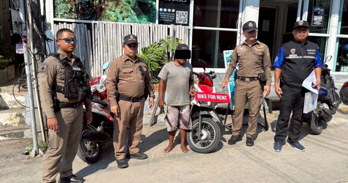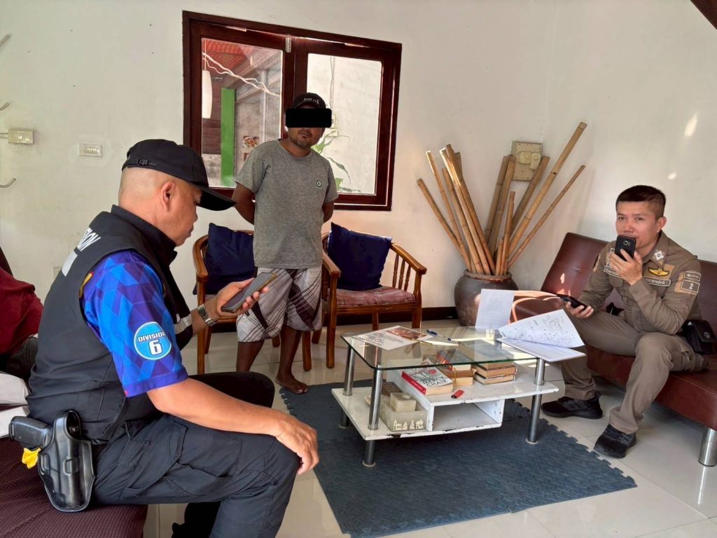 วันที่ 13 ก.พ.2568 เวลาประมาณ 15.30 น. ร.ต.ต.อรุณ พรหมทอง รอง สว.(อก.)ตม.จว.สุราษฎร์ธานี พร้อมเจ้าหน้าที่ชุดสืบสวน ชป.5 (เกาะเต่า) ได้สนธิกำลังร่วมกับ สภ.เกาะเต่า ร่วมกันจับกุมตัวบุคคลสัญชาติ เมียนมา