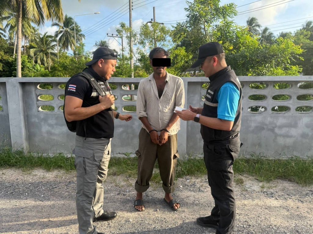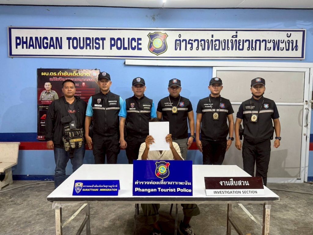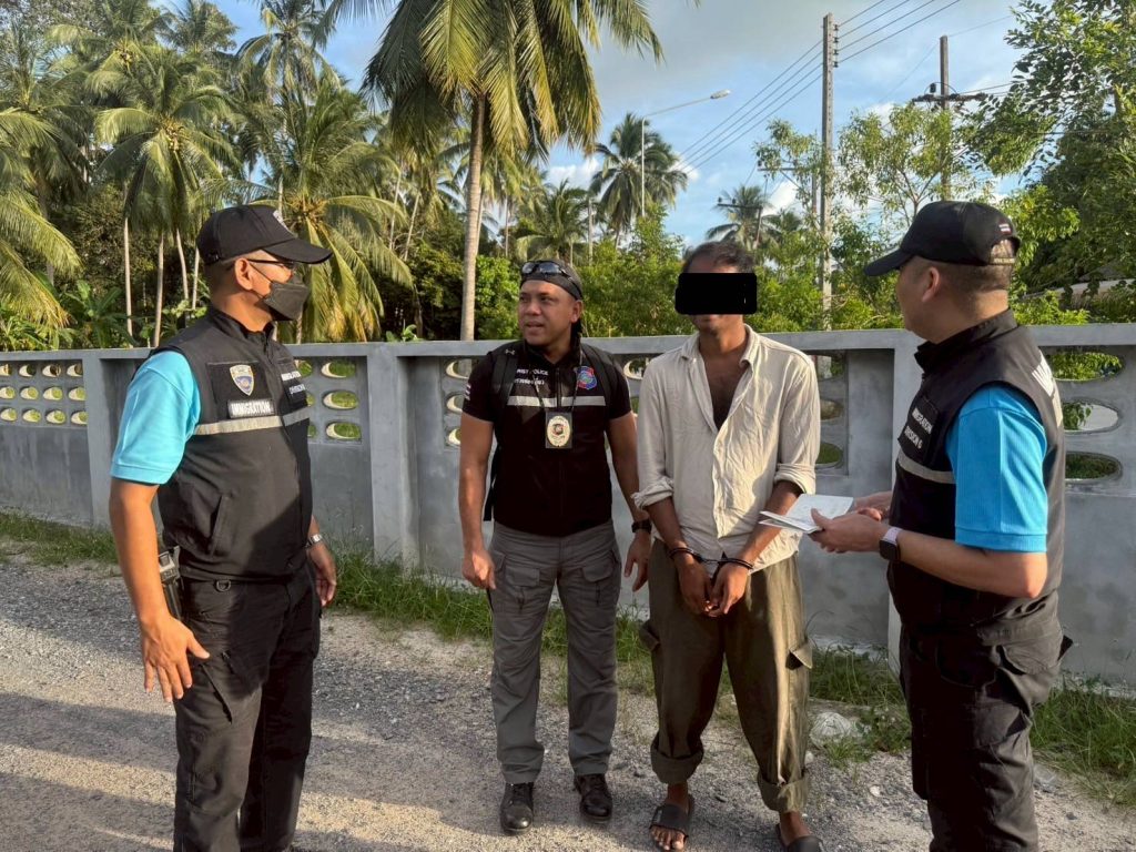 วันที่ 7 มี.ค.68 เวลา 17.45 น. ร.ต.อ.สิทธิชัย ขำสุข รอง สว.ตม.จว.สุราษฎร์ธานี พร้อมเจ้าหน้าที่ชุดสืบสวนฯ ชป.4(พะงัน)ร่วมกับ ส.ทท.5 บบ.ทท.3 และ สภ.เกาะพะงัน ร่วมกันจับกุมตัว