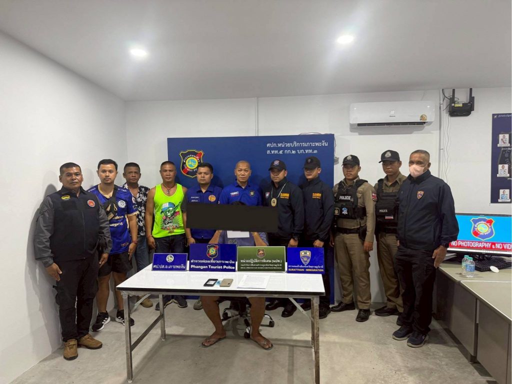 วันที่ 12 พ.ค. 2568 เวลา 22.40 น. ร.ต.อ.สิริวัฒน์ สมหวัง รอง สว ตม.จว. สุราษฎร์ธานี ร่วมกับ เจ้าหน้าที่ตำรวจ สภ.เกาะพะงัน, ส.ทท.5 กก.2 บก.ทท.3,กก.สส.ภ.8, กก.สส.ภ.จว.สุราษฎร์ธานี และ ฝ่ายปกครองอำเภอเกาะพะงัน ร่วมกันจับกุมบุคคลสัญชาติไทย