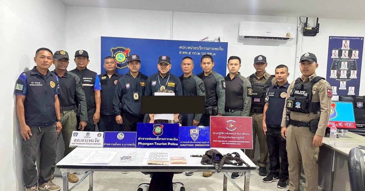 วันที่ 8 พ.ค. 2568 เวลา 21.00 น.ร.ต.อ.สิริวัฒน์ สมหวัง รอง สว ตม.จว. สุราษฎร์ธานี, ร่วมกับ เจ้าหน้าที่ตำรวจ สภ.เกาะพะงัน, ส.ทท.5 กก.2 บก.ทท.3,กก.สส.ภ.8, กก.สส.ภ.จว.สุราษฎร์ธานีและ ฝ่ายปกครองอำเภอเกาะพะงัน ร่วมกันจับกุมบุคคล สัญชาติ รัสเซีย
