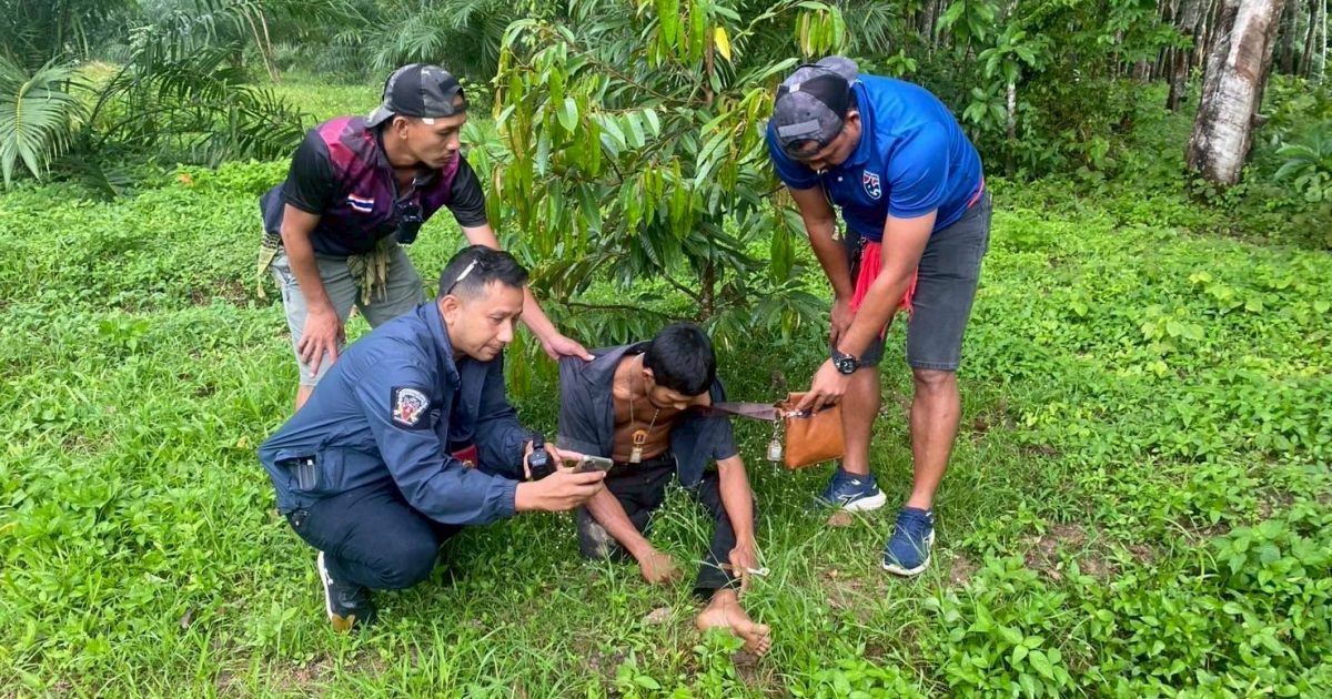 สถานที่จับกุม บ้านเลขที่ 40 ม.10 ต.ช้างซ้าย อ.กาญจนดิษฐ์ จว.สุราษฎร์ธานี