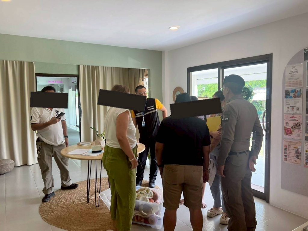 วันที่ 10 ก.พ.2568 เวลา 10.40 น. ว่าที่ พ.ต.ท.พสธร แสนยินดี สว.สส.บก.ตม.6,ร.ต.อ.อรุณ มูสิกิ้ม รอง สว.ตม.จว.สุราษฎร์ธานี พร้อมด้วยเจ้าหน้าที่สืบสวน ชป.3 บูรณาการร่วมกับ เจ้าหน้าที่ตำรวจ สภ.บ่อผุด , เจ้าหน้าที่ รพ.สต.มะเร็ต ร่วมกันตรวจสอบสถานประกอบการ บริษัท มอม ทู บี จำกัด เลขที่ 33/14 ม.2 ต.มะเร็ต อ.เกาะสมุย จว.สุราษฎร์ธานี ซึ่งเป็นสถานให้บริการด้านสุขภาพประเภท การทำโยคะก่อนคลอดบุตร การให้คำปรึกษาก่อน ระหว่าง และหลังคลอดบุตร สัญชาติ รัสเซีย ตำแหน่ง ผู้จัดการสถานที่ดังกล่าว เป็นผู้นำตรวจ ผลการตรวจสอบ เจ้าหน้าที่ รพ.สต.มะเร็ต ดำเนินการเก็บพยานหลักฐานต่าง ๆ ในส่วนที่เกี่ยวข้อง รวบรวมนำเสนอ เพื่อดำเนินการร้องทุกข์กล่าวโทษดำเนินคดีตามขั้นตอนของกฏหมายต่อไป