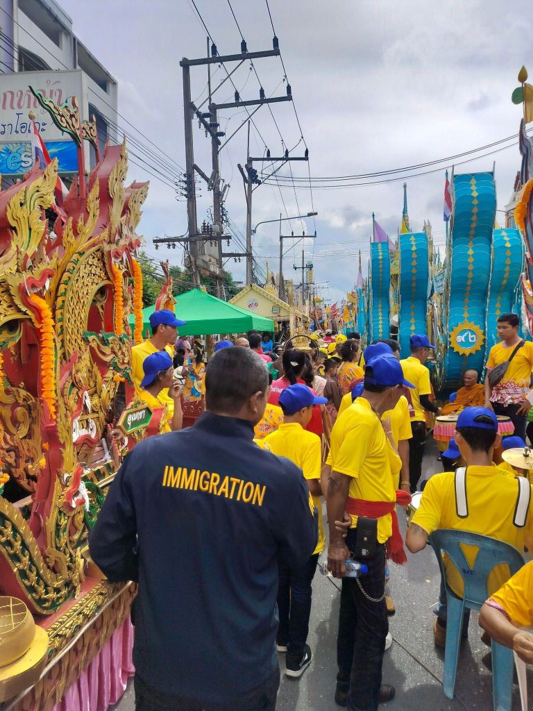 วันที่ 18 ต.ค.67 เวลา 16.30 น. ภายใต้การอำนวยการและสั่งการของ ว่าที่ พ.ต.อ.นฤวัต พุทธวิโร ผกก.ตม.จว.สุราษฎร์ธานี มอบหมายให้ ด.ต.ธเนศพล สำลี และ ด.ต.หญิง จันทรวดี พัฒนศักดิ์ ผบ.หมู่ ตม.จว.สุราษฎร์ธานี ร่วมกิจกรรม “งานประเพณีชักพระ ทอดผ้าป่า และแข่งเรือยาว จังหวัดสุราษฎร์ธานี” ประจำปี 2567 ทั้งนี้ มีวัตถุประสงค์เพื่อเป็นการอนุรักษ์และสืบสานประเพณีวัฒนธรรมอันดีงามของท้องถิ่นให้คงอยู่สืบไป โดยร่วมขบวนแห่เรือพนมพระทางบก ทั้งหมด 109 ลำ บริเวณหน้าศาลากลางจังหวัดสุราษฎร์ธานี-สะพานนริศ อ.เมือง จ.สุราษฎร์ธานี