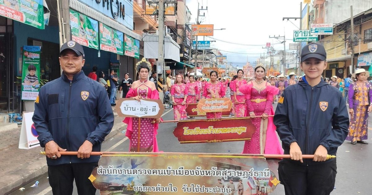 วันที่ 18 ต.ค.67 เวลา 16.30 น. ภายใต้การอำนวยการและสั่งการของ ว่าที่ พ.ต.อ.นฤวัต พุทธวิโร ผกก.ตม.จว.สุราษฎร์ธานี มอบหมายให้ ด.ต.ธเนศพล สำลี และ ด.ต.หญิง จันทรวดี พัฒนศักดิ์ ผบ.หมู่ ตม.จว.สุราษฎร์ธานี ร่วมกิจกรรม “งานประเพณีชักพระ ทอดผ้าป่า และแข่งเรือยาว จังหวัดสุราษฎร์ธานี” ประจำปี 2567 ทั้งนี้ มีวัตถุประสงค์เพื่อเป็นการอนุรักษ์และสืบสานประเพณีวัฒนธรรมอันดีงามของท้องถิ่นให้คงอยู่สืบไป โดยร่วมขบวนแห่เรือพนมพระทางบก ทั้งหมด 109 ลำ บริเวณหน้าศาลากลางจังหวัดสุราษฎร์ธานี-สะพานนริศ อ.เมือง จ.สุราษฎร์ธานี